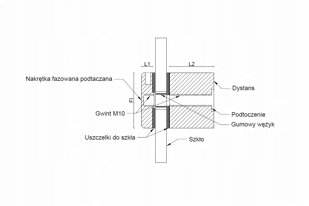 Точкове кріплення скла Ф 40 мм з відстанню 40 мм до плоскої поверхні.