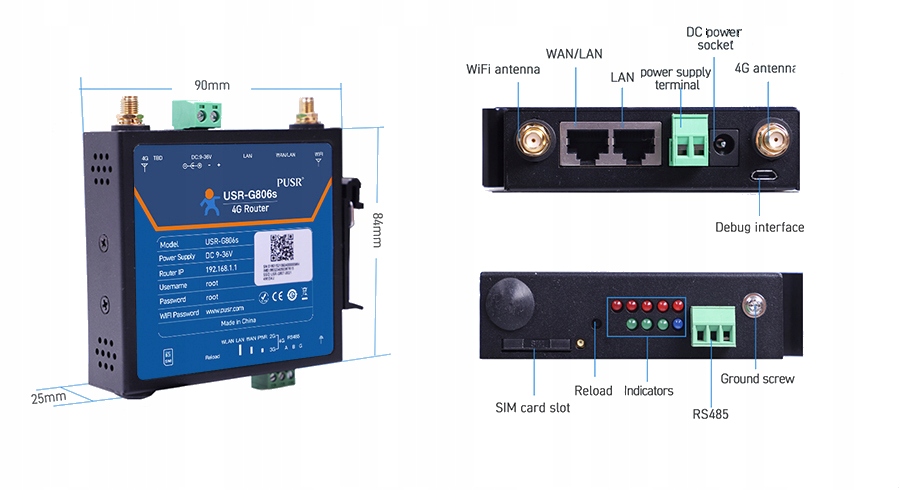 Router 4G przemysłowy USR-G806s z funkcją DTU i RS485