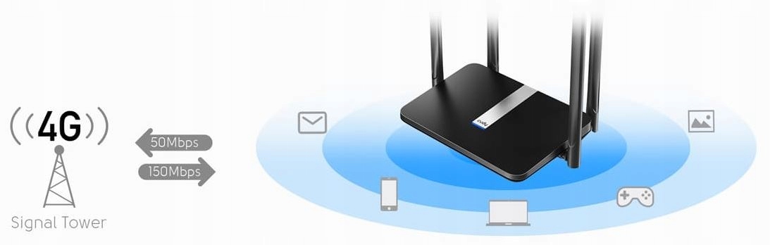 Маршрутизатор Cudy LT500 дозволяє завантажувати дані за технологією LTE зі швидкістю до 150 Мбіт/с. Це означає блискавичне завантаження веб-сайтів, комфортний перегляд відео в Інтернеті або прослуховування музики через потокові сервіси. Файли завантажаться миттєво. Тому це ідеальний пристрій не тільки для домашнього використання, але і для компаній середнього розміру. Пристрій дозволяє підключити ще 3 пристрої за допомогою стандартного порту LAN і модему або інший пристрій за допомогою порту LAN / WAN. Цей функціонал ідеально підходить, якщо ви часто працюєте в полі і вам потрібно забезпечити мобільний доступ до Інтернету для кількох пристроїв одночасно.