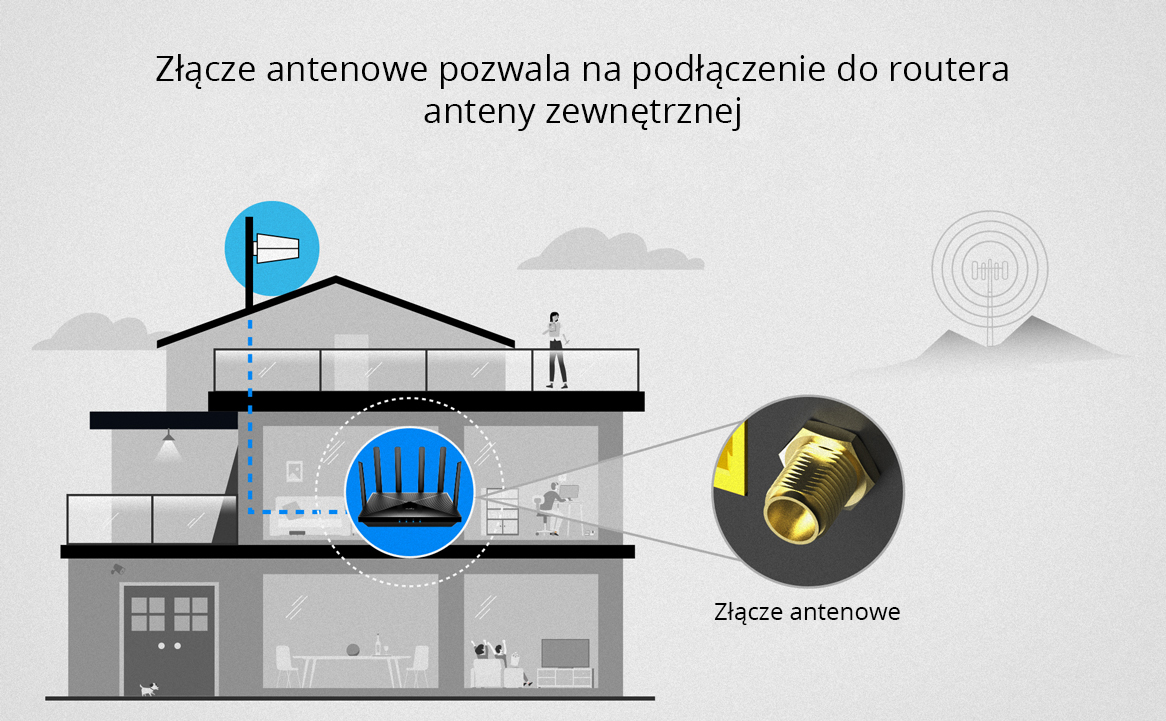 Завдяки двом високим зовнішнім 5 дБі 4G LTE антенам ви забезпечуєте ефективне та стабільне з’єднання з кожним пристроєм, створюючи мережу Wi-Fi широкого радіусу дії для вашого дому.