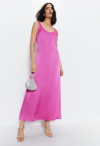 RÓŻOWA PROSTA GŁADKA SUKIENKA SATYNOWA MAXI WIECZOROWA WAREHOUSE