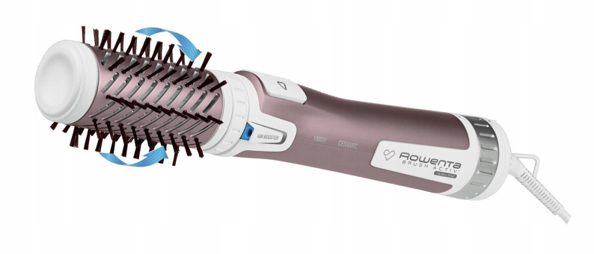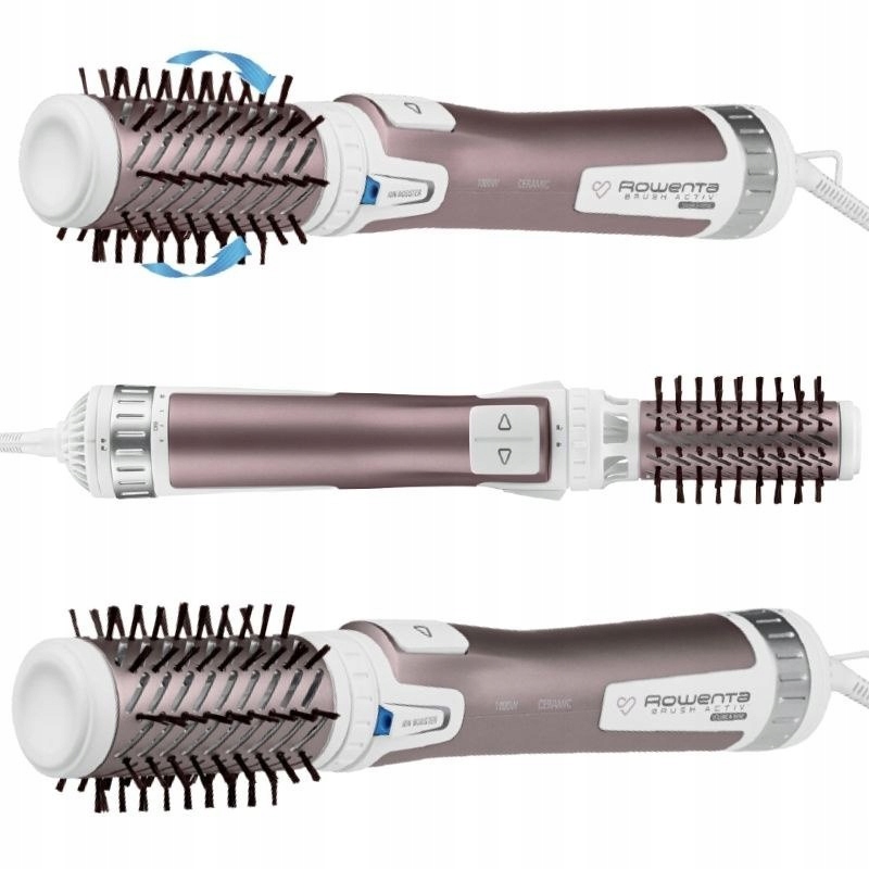 сушарка для догляду за преміум -догляду. Подвійна іонна допомога виробляє понад 40 разів більше* іонів, що дозволяє усунути ефект Frizz та електрифікацію, а отже, і простота стилізації. Висока потужність 1000 Вт забезпечить продуктивність стилів, а двостороннє обертання є винятковою зручністю. 3 градуси регулювання швидкості/температури, включаючи прохолодне подача повітря, дозволить пристрою відповідати типам волосся. * Порівняно з Rowent Brush Active CF9220.
