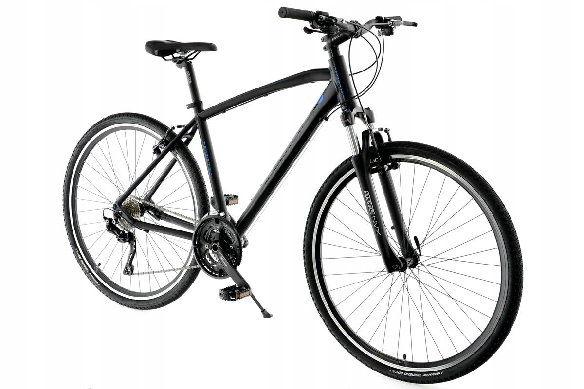 Це добротний польський велосипед з алюмінієвою рамою на колесах 28″ і аксесуарами Shimano Deore з великою кількістю передач (30). Багатьом велосипедистам напевно сподобається мінімалістичний дизайн із блискучим покриттям, що ідеально відповідає сучасним тенденціям ринку велосипедів.