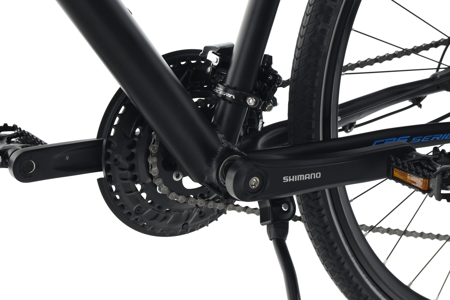 Передній перемикач Shimano ACERA, оснащений посиленою направляючою ланцюга та технологією TOP SWING, що забезпечує більшу жорсткість, зберігаючи швидкість і легкість перемикання.