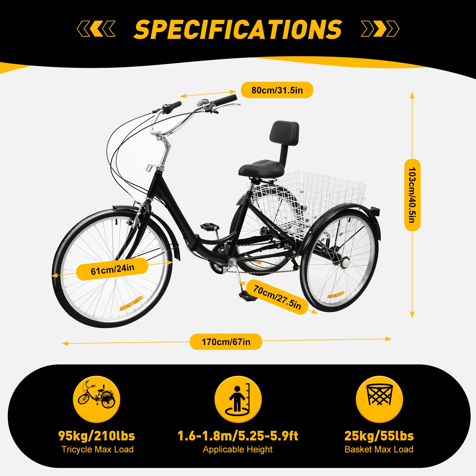 Rower trójkołowy, rower z bagażnikiem koła 24 cale 7 biegów