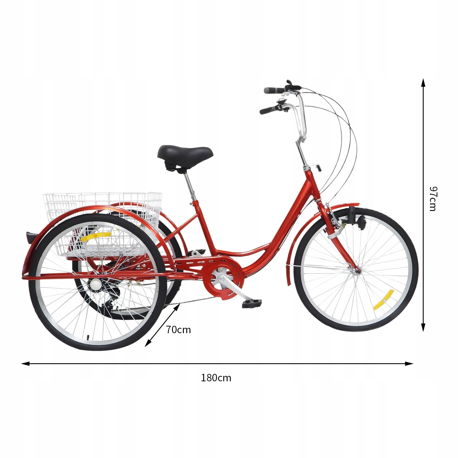 ROWER TRÓJKOŁOWY DLA DOROSŁYCH CZERWONY 24 CALE KOSZYK ŚWIATŁO 3 KOŁA 24''