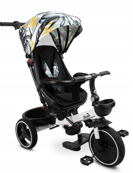 Триколісний велосипед Dash — чудова альтернатива колясці. Її можна використовувати як велосипед, на якому дитина може самостійно кататися, і як коляску з балдахіном, в якій дитину можна перевозити як обличчям, так і обличчям назад. У передній і задній частині велосипеда є кошики, які дозволяють перевозити дрібні речі. Велосипед оснащений двома підніжками: виступаючою з рами велосипеда та кріпленою до сидіння. Кожна підніжка регулюється для комфорту вашої дитини. Задні колеса велосипеда оснащені гальмами, що дозволяє безпечно залишити велосипед, не турбуючись, що він поїде сам.