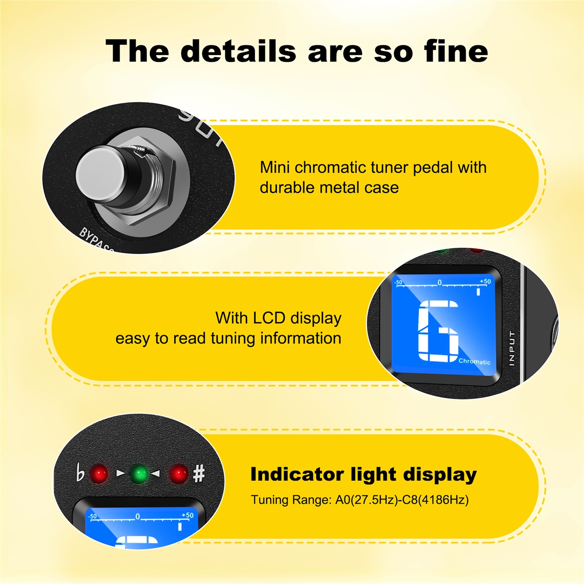 Мініатюрна педаль хроматичного тюнера з міцним метою.