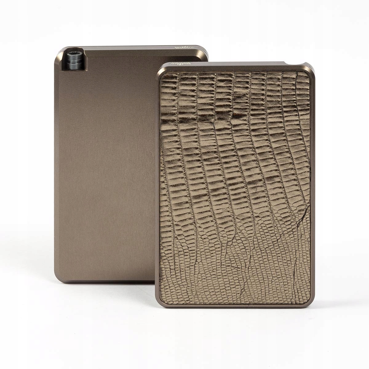 Made з високоякісного шліфованого алюмінію. Верхня кришка оздоблена шкірою ящірки.
