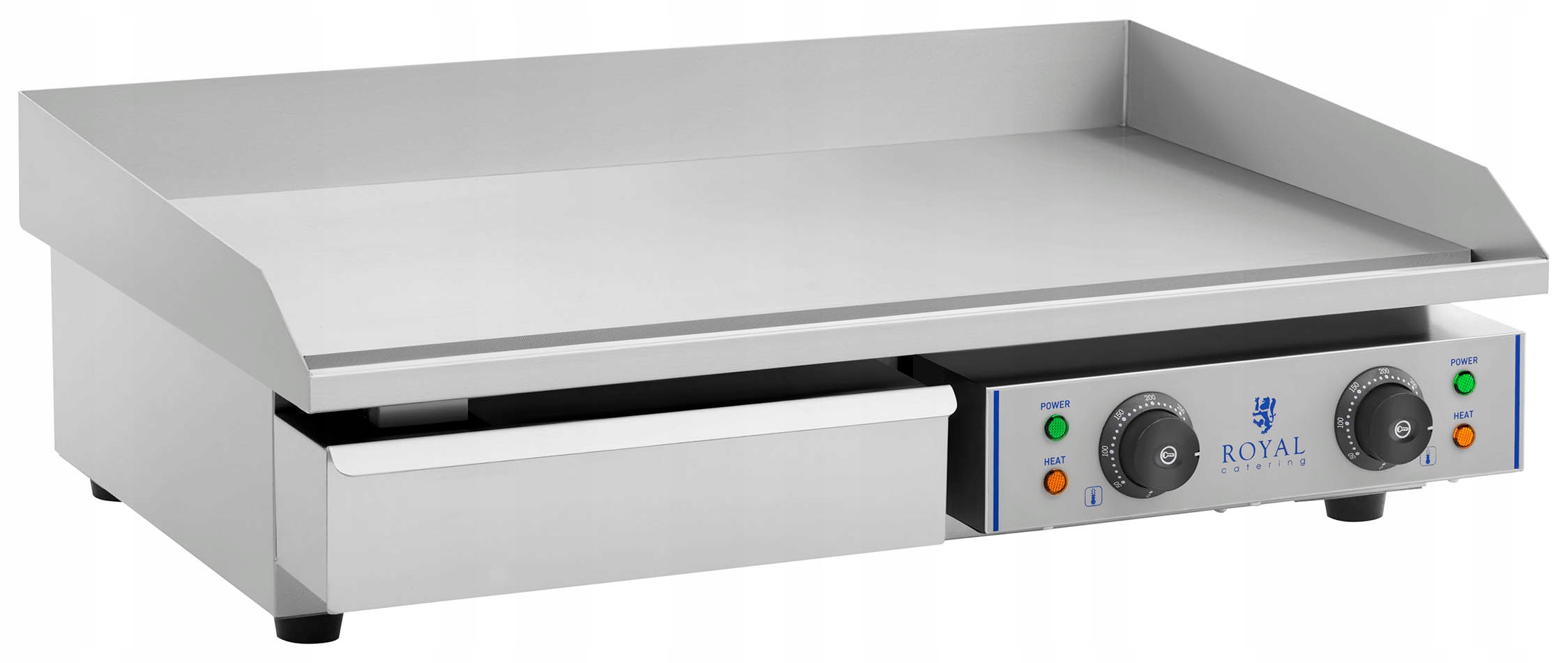 Артикул виробника: 10010251 Професійний гриль призначений для малих і великих закладів громадського харчування та мобільних точок громадського харчування. Прилад має знімний піддон для надлишків жиру, який можна мити в посудомийній машині. На нагрівальній плиті є практична канавка, яка дозволяє легко стікати зайвий жир, тим самим покращуючи якість приготованих страв. Пристрій призначений для вимогливих клієнтів, які цінують зручність використання та легкість утримання самого гриля та навколо нього в чистоті, чому сприяють високі стінки, що оточують нагрівальну плиту. Висока потужність дозволяє швидко нагріти дуже товсту чавунну плиту та обмежує перепад температури під час смаження. Сучасний терморегулятор і ефективний обігрівач допомагають економити електроенергію. Дві окремо регульовані зони нагріву дозволяють одночасно готувати дві різні страви з різною температурою. Особливості та функції: