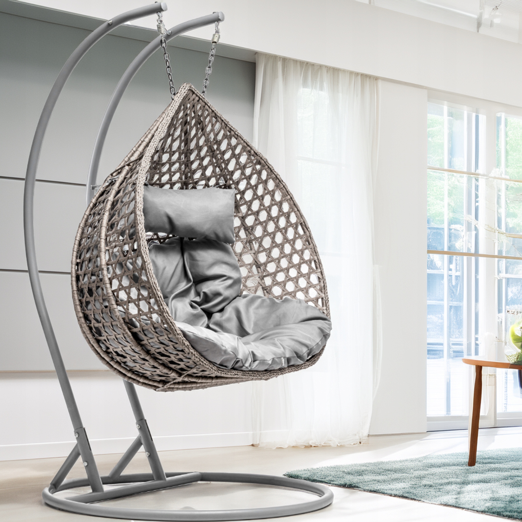 Розаї, що підвішують крісло, подвійний базон відро преміум -сірого преміум -класу товста плетіння