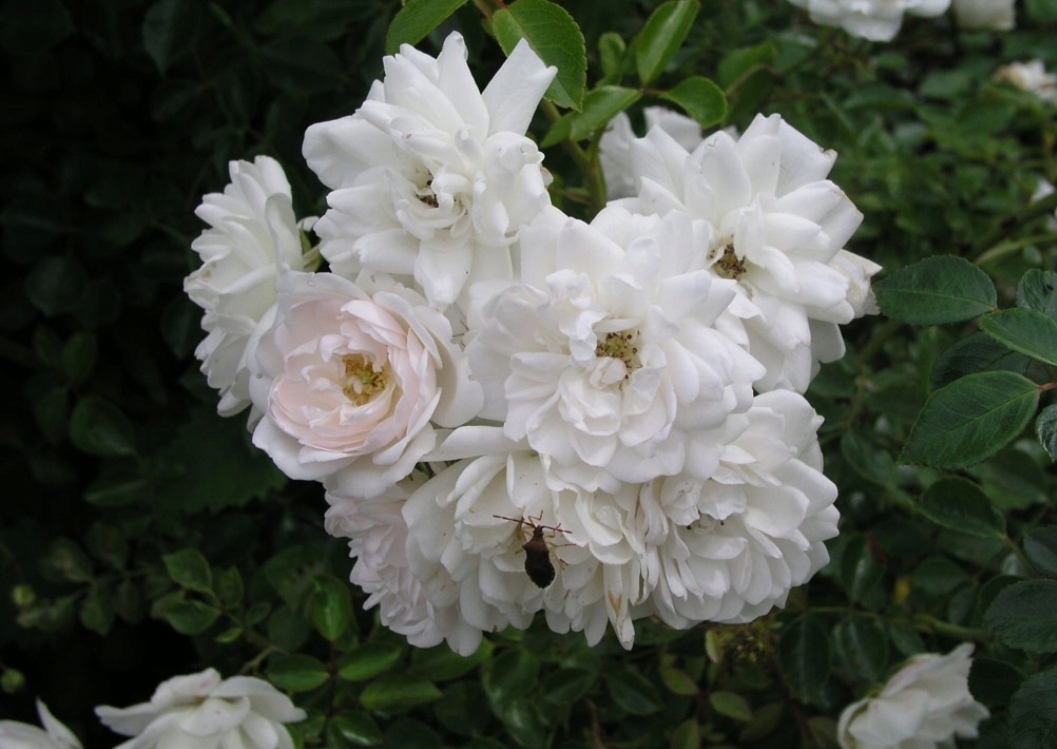 - Квіти: Повна, снігова -біла, мала (3-4 см), зібрані у великому навісі.