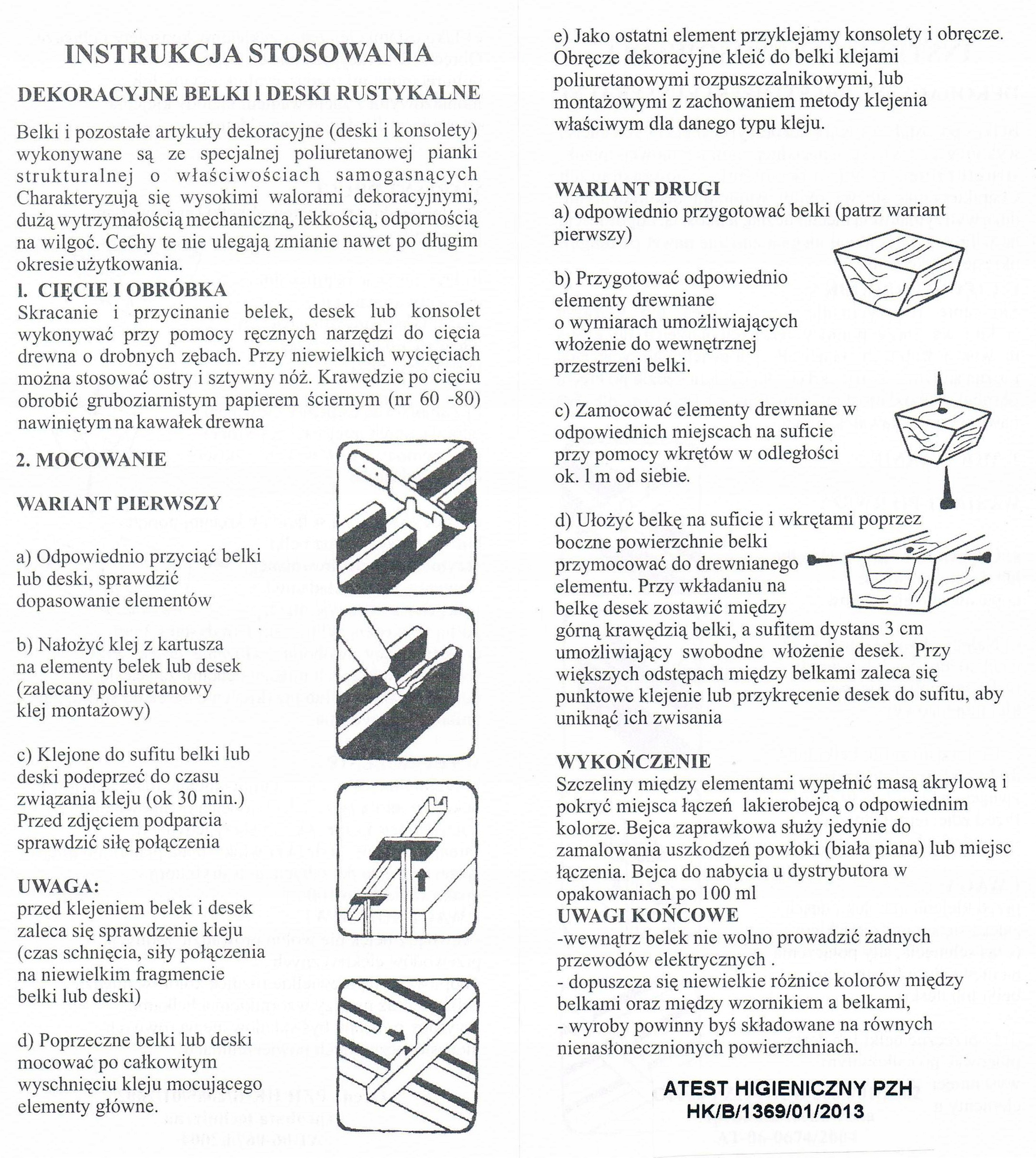 Балки та інші декоративні вироби (борти та консолі) виготовлені зі спеціального поліуретанового конструкційного пінополіуретану з властивостями самозатухання. Відрізняються високою декоративністю, високою механічною міцністю, легкістю та стійкістю до вологи. Ці характеристики не змінюються навіть після тривалого періоду використання.