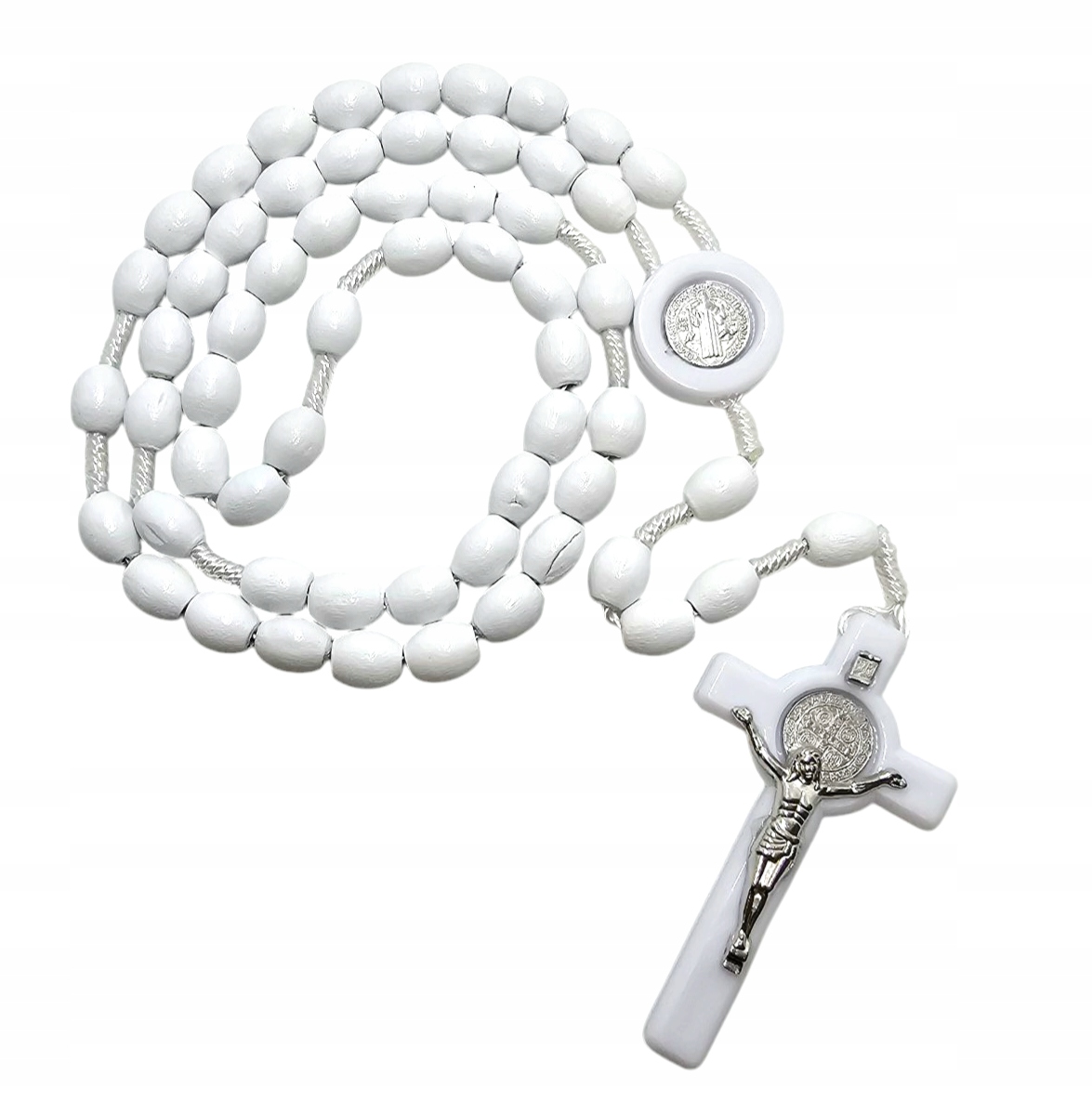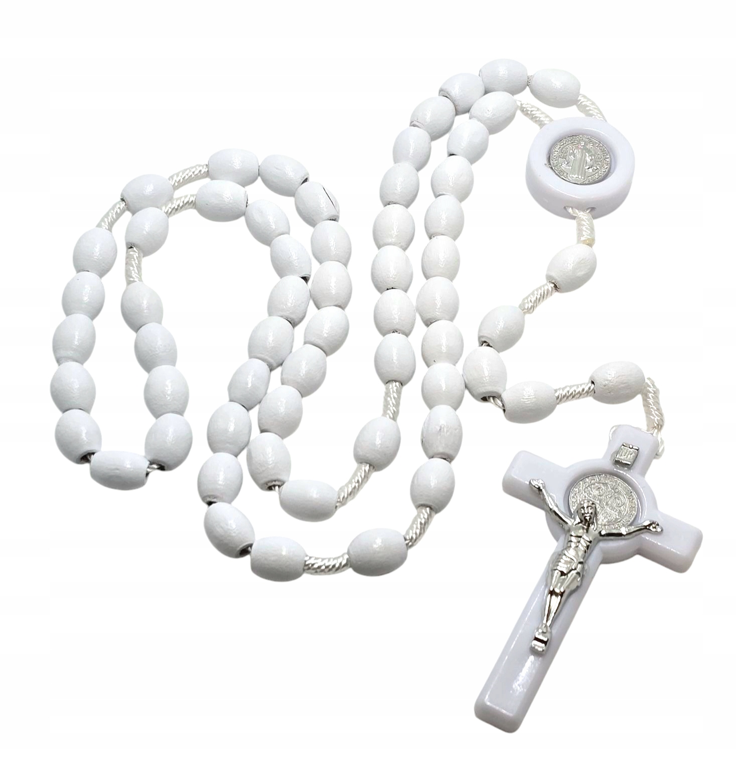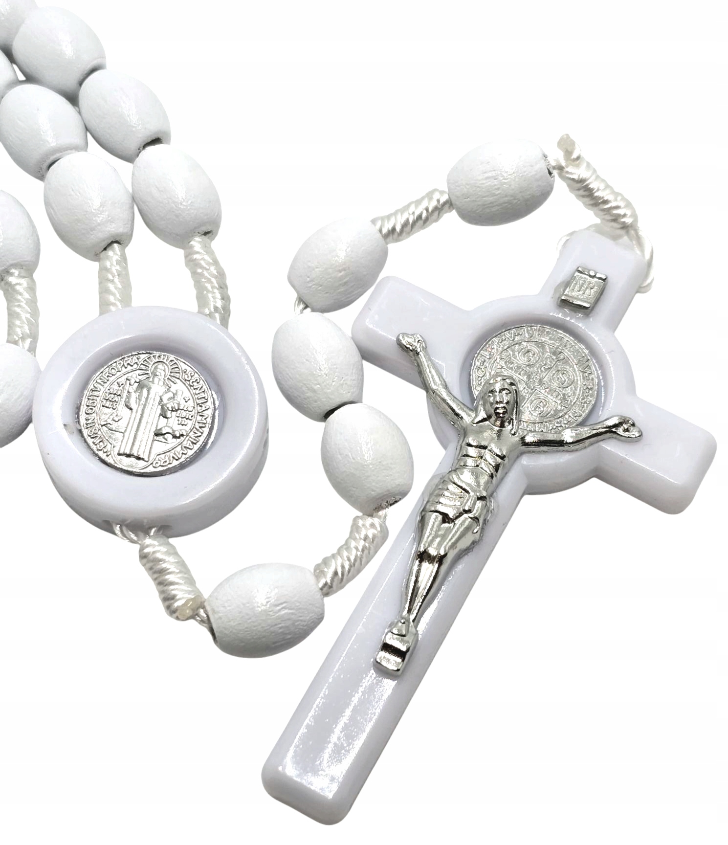 Білий розарій з медаллю святого Бенедикта - дерев’яних намистин.