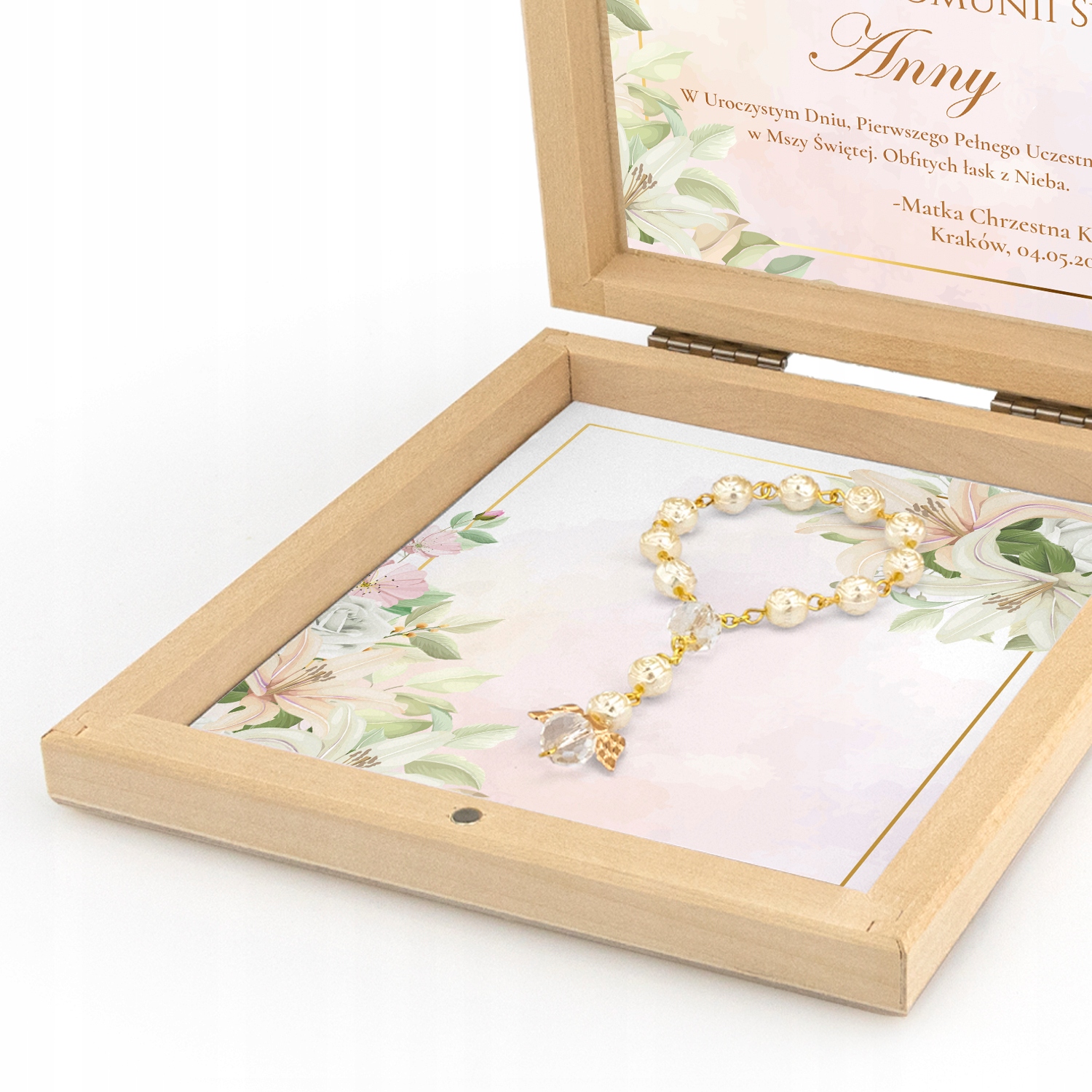 Вервиця буде запакована в дерев'яну коробку з присвятою. Гарний сувенір до цього важливого дня.