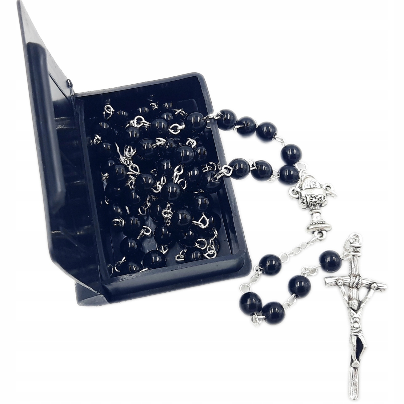 РОЗАРІЙ ДЛЯ І ПРИЧАСТЯ чорні кульки + коробка