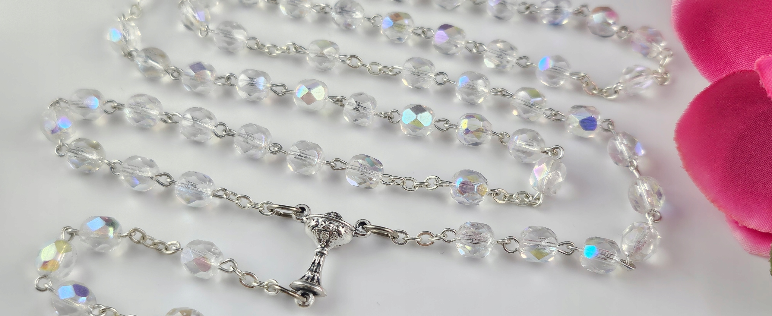 Розарій для причастя, прозорі кристали з опалом