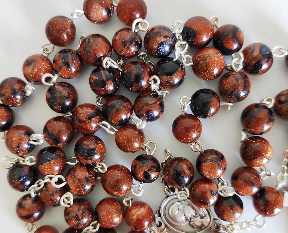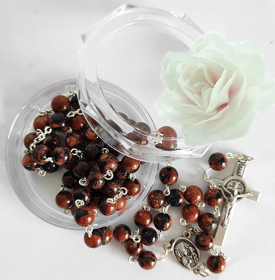 ЧУДОВИЙ РОЗАРІЙ З НАТУРАЛЬНОГО КАМЕНЮ - ПЕСТУЛЬНИЙ ПІСОК + КАЇРСЬКА НІЧ зі СВ. БЕНЕДИКТА.