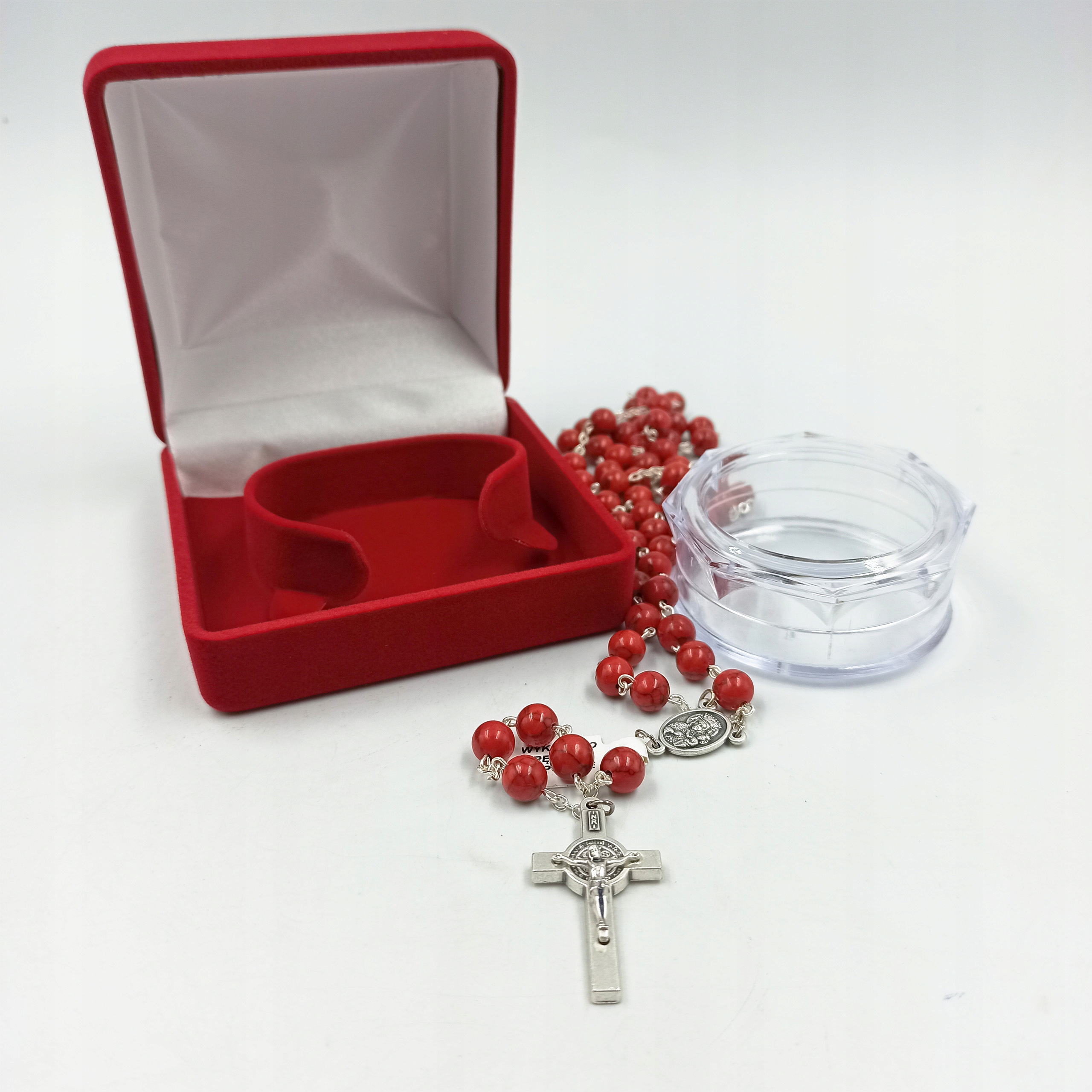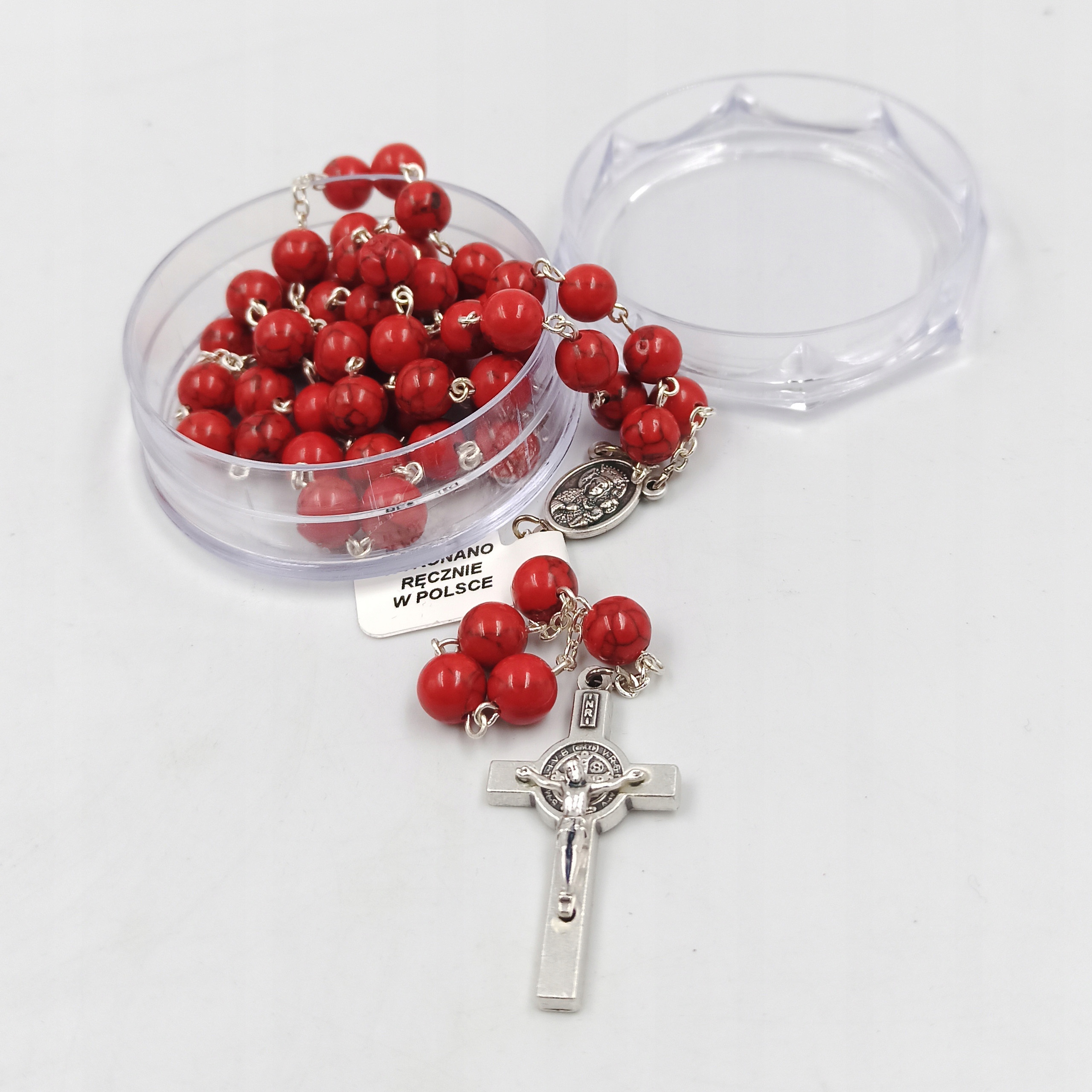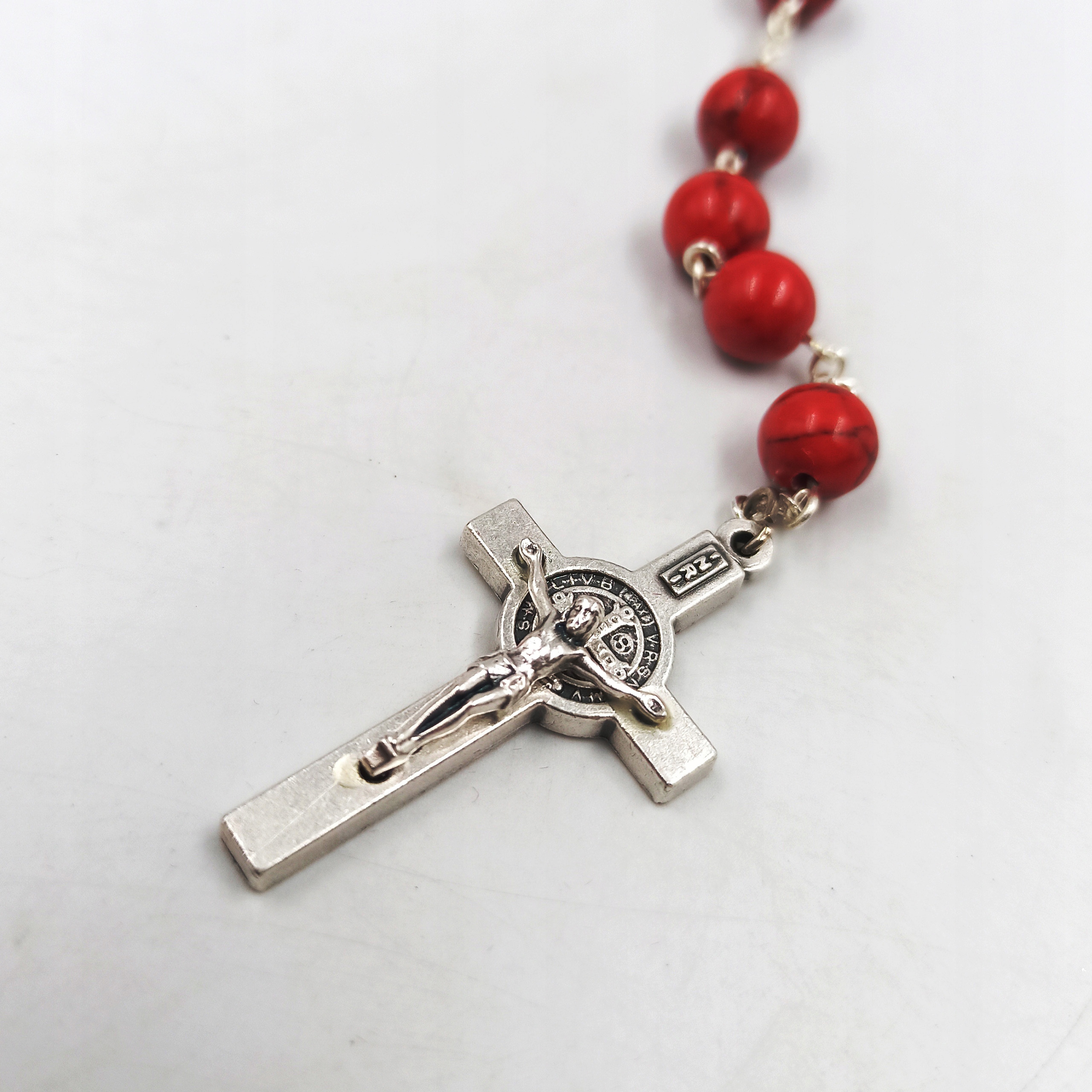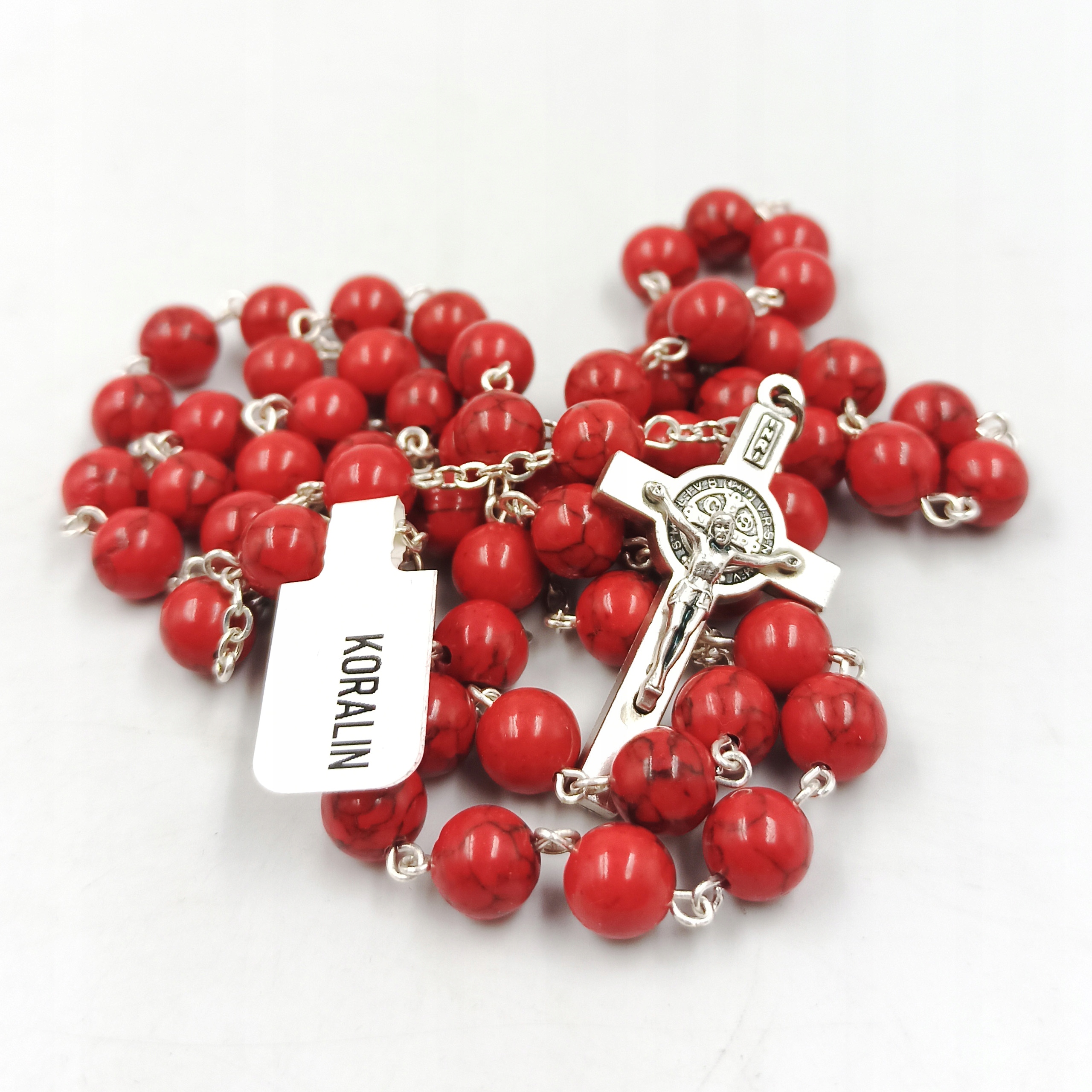 Представляємо унікальну вервицю польського виробництва, намистини якої виготовлені з феноменально красивого природного каменю - кораліни. Решта елементів, як-от з’єднання, хрест і медальйон, були виготовлені з металу. Все виглядає солідно і надзвичайно акуратно.