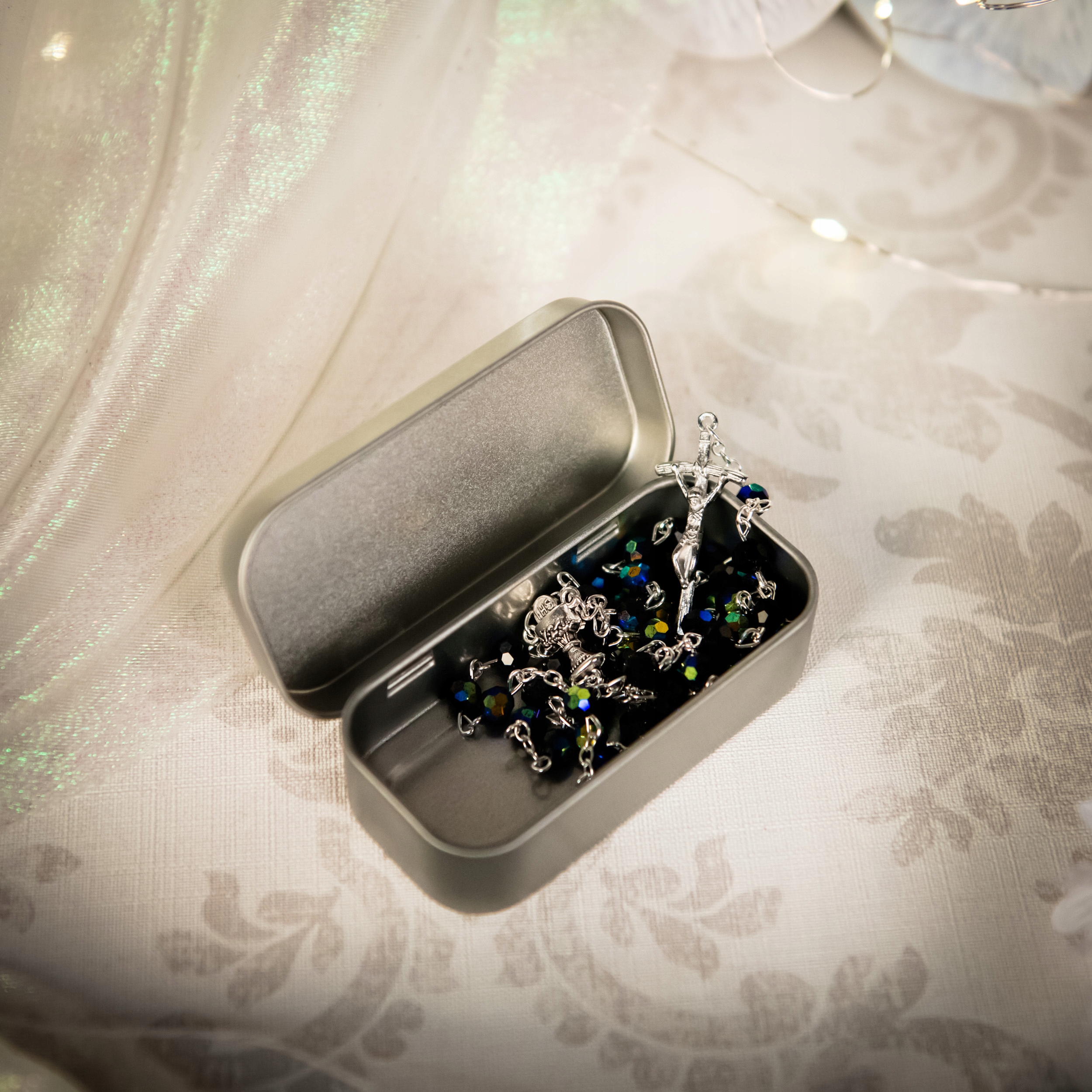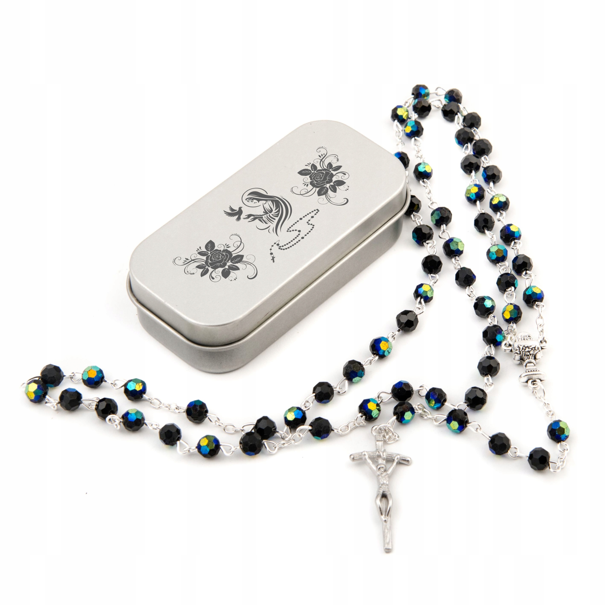 РОЗАРІЙ з коробкою, вигравірувані райдужні кристали, ПОДАРУНОК ПРИ ХРЕЩЕННІ
