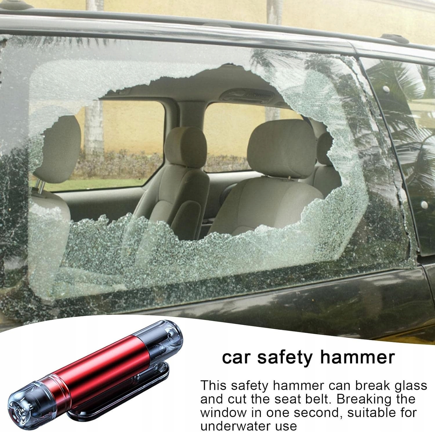 Інструмент 2 в 1. Зробіть цей автомобільний молоток таким гострим, щоб він міг легко розбити вікна автомобіля та врятувати життя. Гострий різак для ременів безпеки з нержавіючої сталі може розрізати ремінь безпеки за найкоротший час. Міцний і стабільний Кожен автомобільний склорозбивач виготовлений з високоякісного алюмінієвого сплаву ABS і вольфрамової сталі для створення міцних і довговічних виробів. І він досить міцний для використання. Зручна рукоятка Дерев’яна ручка цього ножа з ременем безпеки з вуглецевої сталі не ковзає та захищає ваші руки для безпечного та зручного захоплення. Компактний і портативний. Нековзаюча рукоятка розбивача скла досить довга для легкого керування. Він компактний і портативний, тому ви можете розмістити його будь-де в автомобілі. Подарує вам душевний спокій Цей автомобільний розбивач вікон забезпечить вам душевний спокій, коли ваша машина опиниться на мілині. Його можна використовувати в різних ситуаціях: перекидання, збій електросистеми, пожежа автомобіля, аварія, потоплення автомобіля.