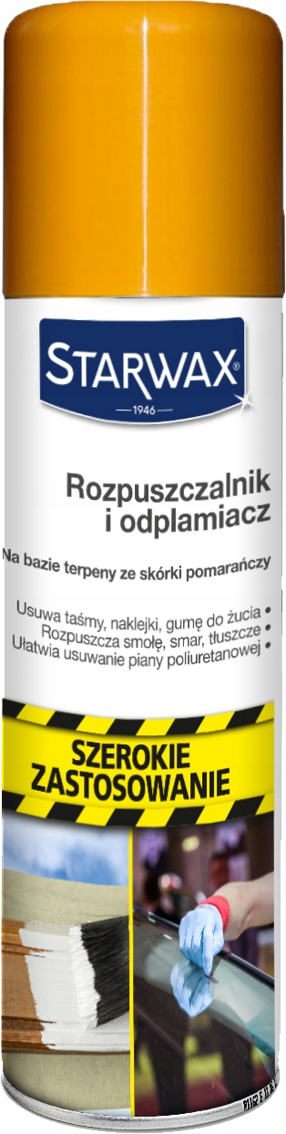 STARWAX Solvent and Stain Remover (раніше Treffer) — багатофункціональний спрей ремувер» на основі екстракту апельсинової кірки. Засіб для видалення наклейок ефективно видалить липкі плями, жуйку та інші забруднення. Засіб для видалення етикеток і клею необхідний для ремонтних робіт, тому що він відмінно розм'якшує і дозволяє легко видалити пінополіуретан або монтажну стрічку. Засіб для видалення етикеток чудово знежирює і додатково видаляє плями з тканин безпосередньо перед пранням. Природний розчинник повністю біологічно розкладається.