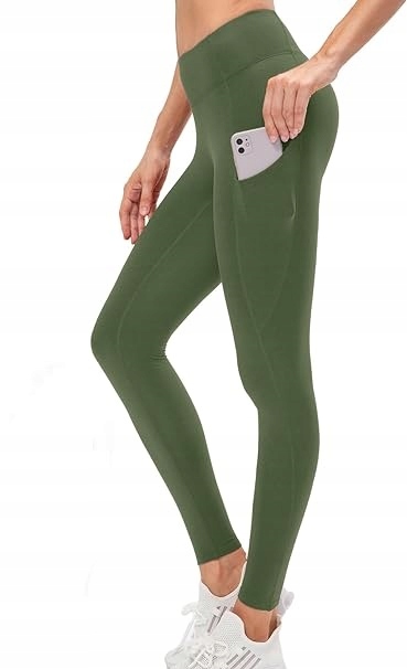 ROZCIĄGLIWE GETRY LEGGINSY DAMSKIE Z KIESZENIAMI DO ĆWICZEŃ FITNESS L KHAKI