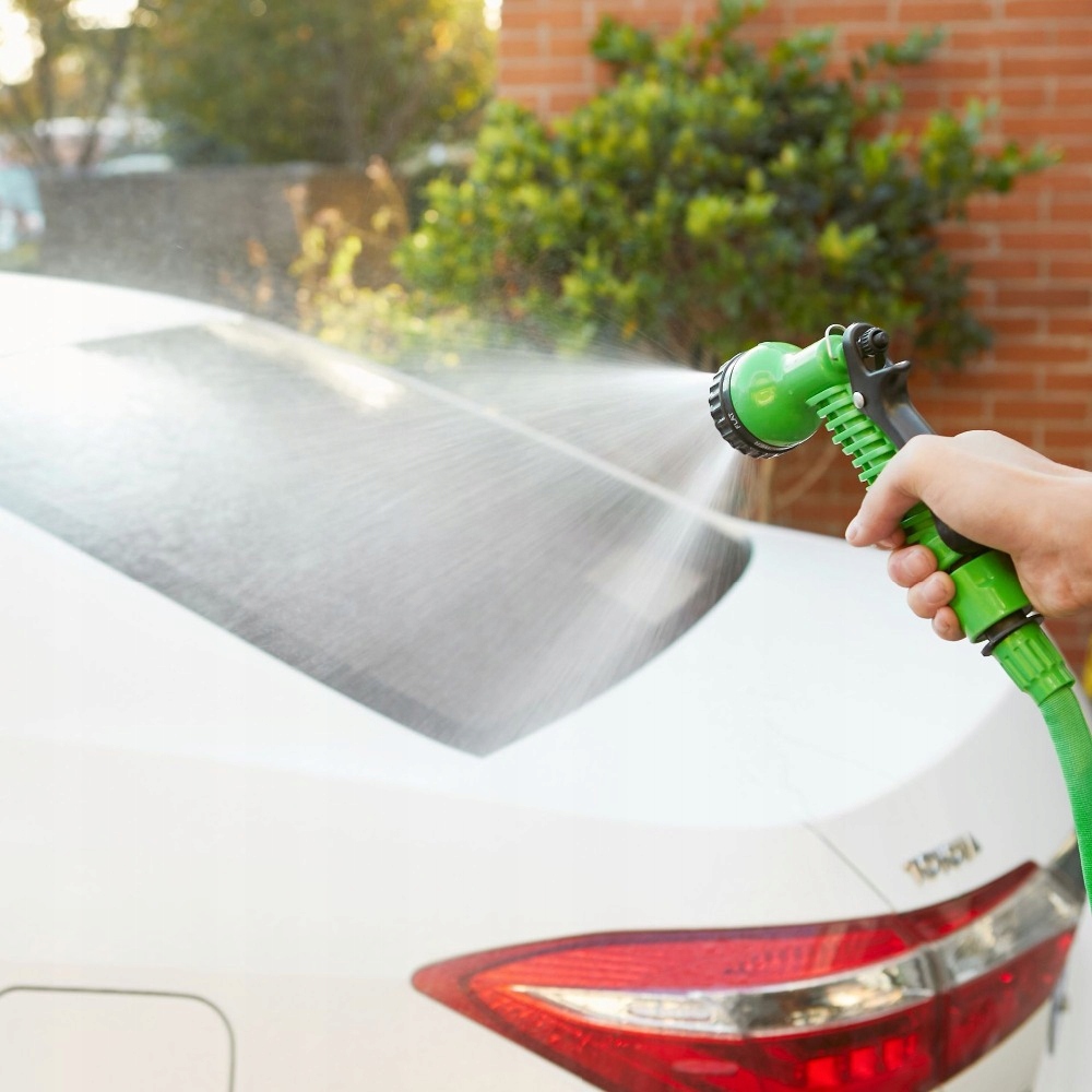- Розширюваний садовий шланг, який у складеному стані довжиною води майже в 3 рази!