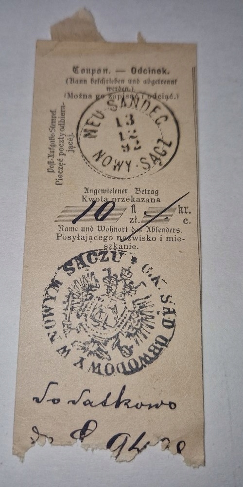 Розділ поштового переказу Nowy Sącz Neu Sandec