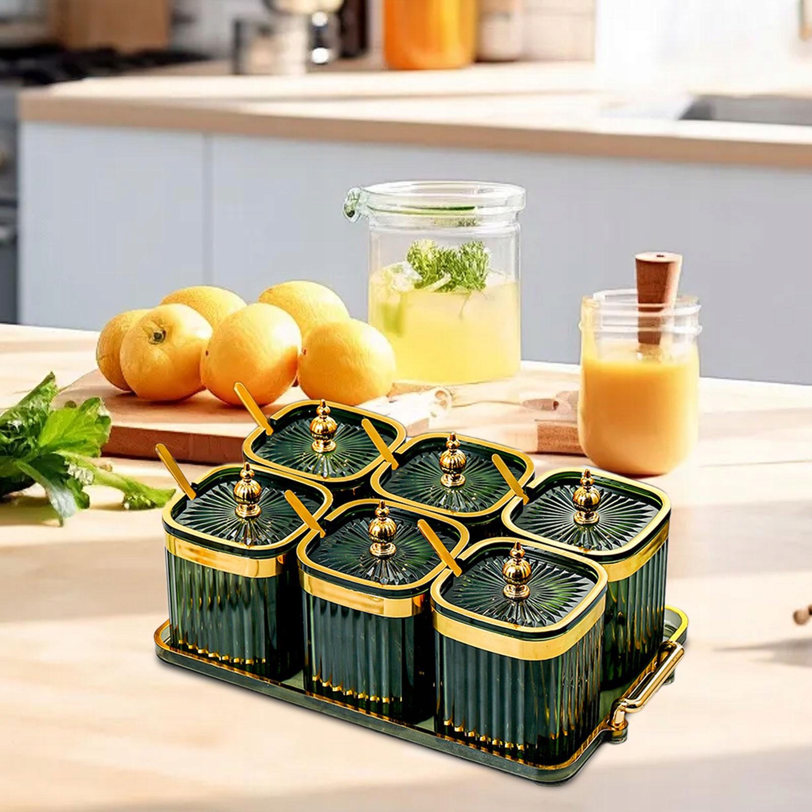Розділена коробка для зберігання їжі на блюді з кришкою та ложкою для домашньої кухні, зеленою, 6 мереж