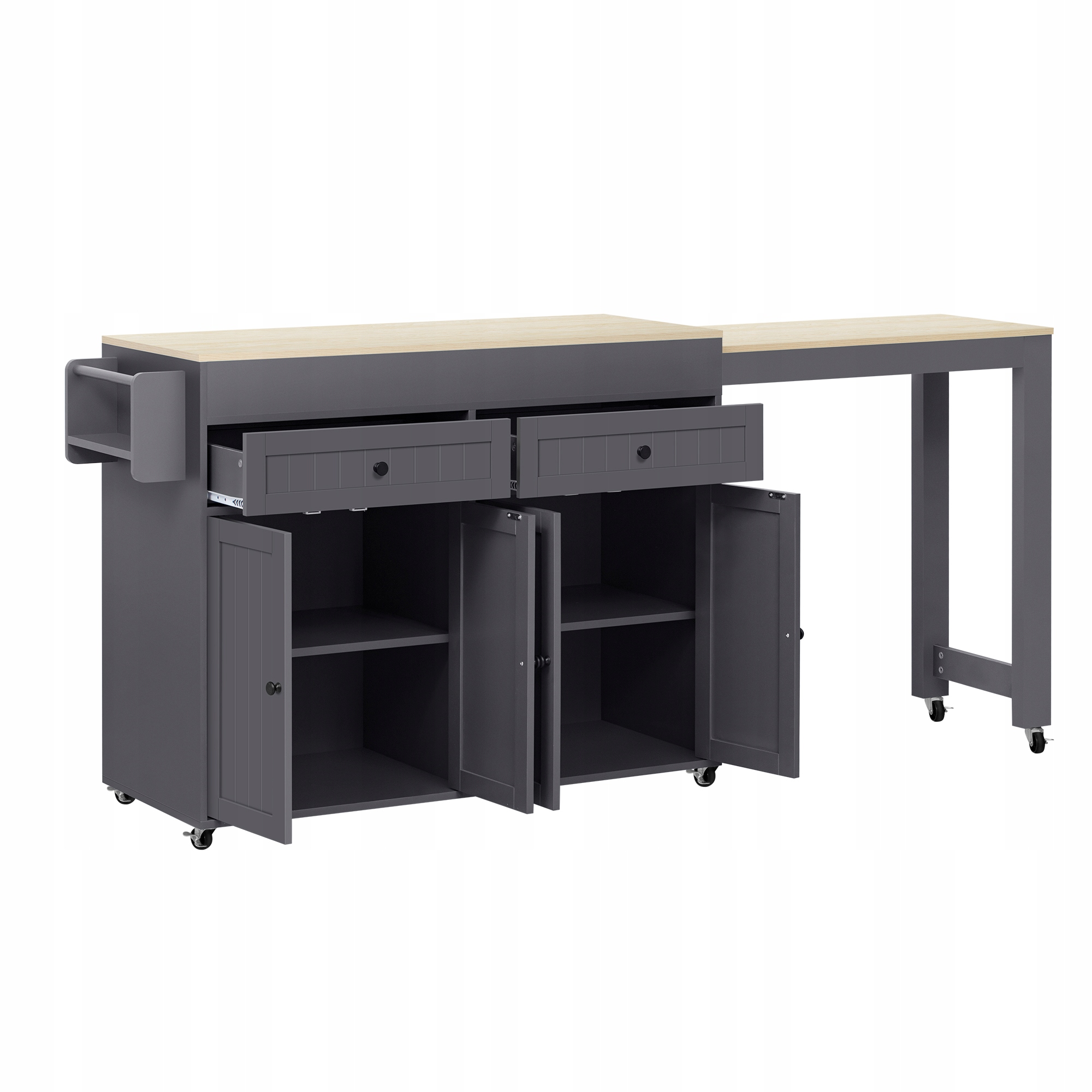 ✨[Висувні боковини] Цей кухонний острів має унікальну висувну бічну стільницю. Просто потягніть, щоб розгорнути дорогоцінну стільницю (від 112 см до 180,5 см), що робить її ідеальною для приготування їжі, використання кавоварки або як імпровізовану їдальню. Просто зніміть його після використання, щоб заощадити місце та створити охайний вигляд.