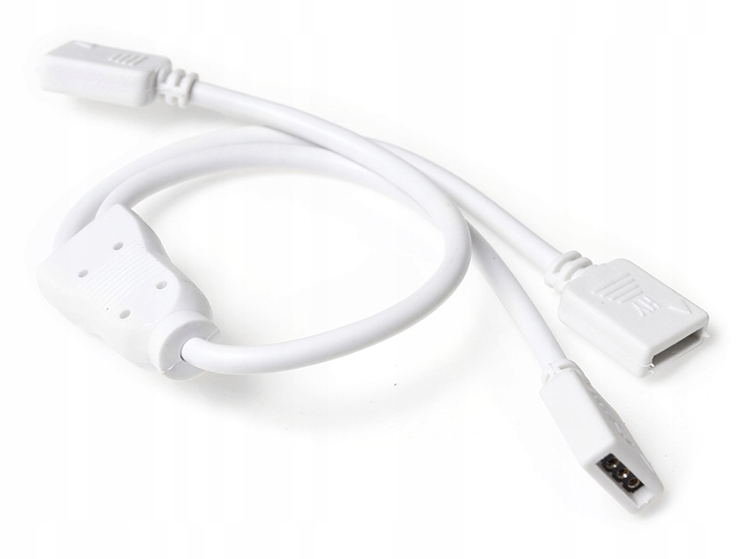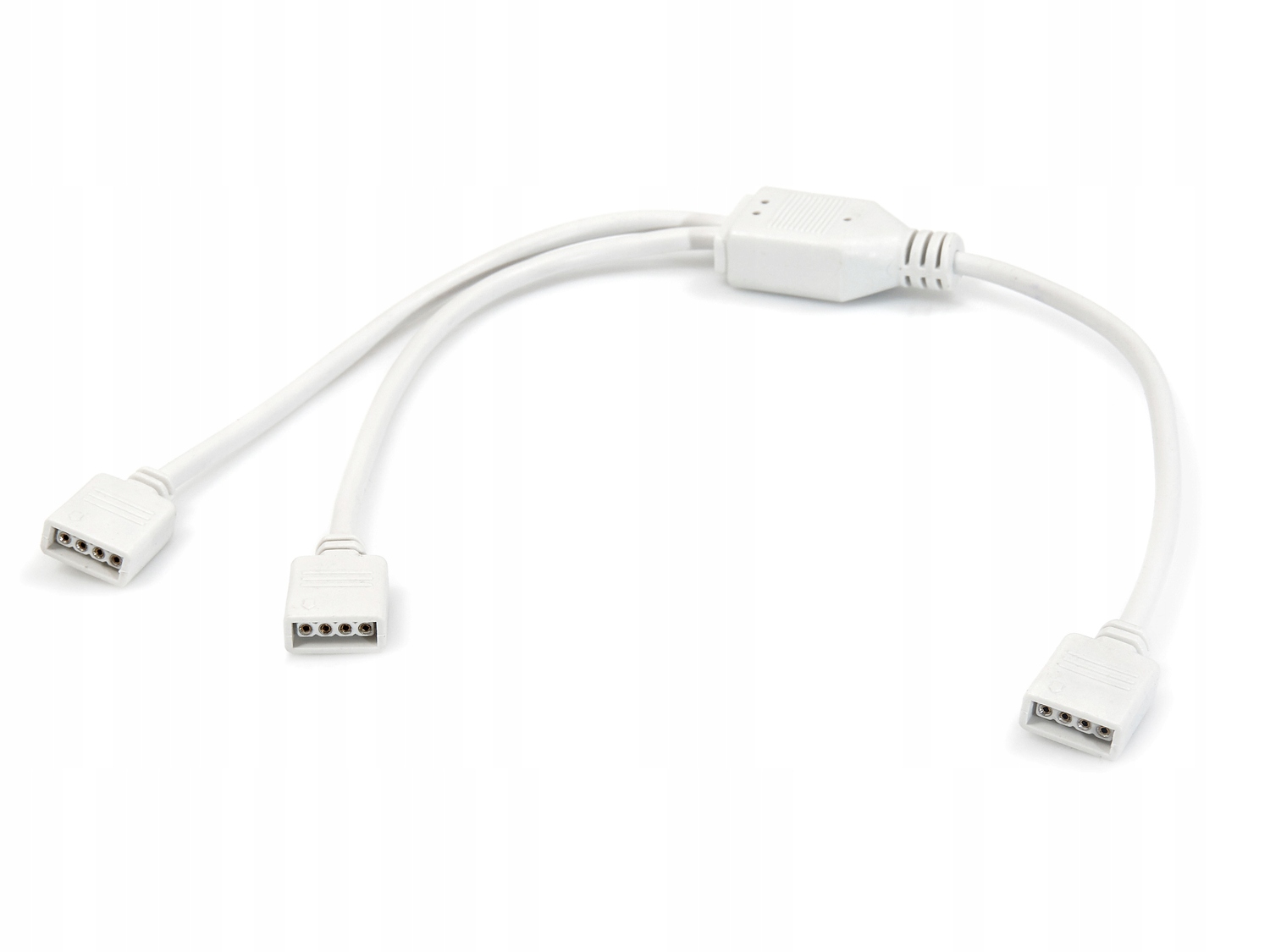 Сплітер для RGB світлодіодних стрічок, що розподіляє сигнал від однієї до двох світлодіодних стрічок. Розгалужувач оснащений 4-контактними драбинчастими роз'ємами, що дозволяє швидко і легко підключати всі світлодіодні стрічки. Важливий роз’єм для побудови складних систем RGB без необхідності пайки. Все, що вам потрібно зробити, це підключити контролер до одного боку розгалужувача та надійно підключити дві незалежні світлодіодні стрічки RGB до іншого боку.