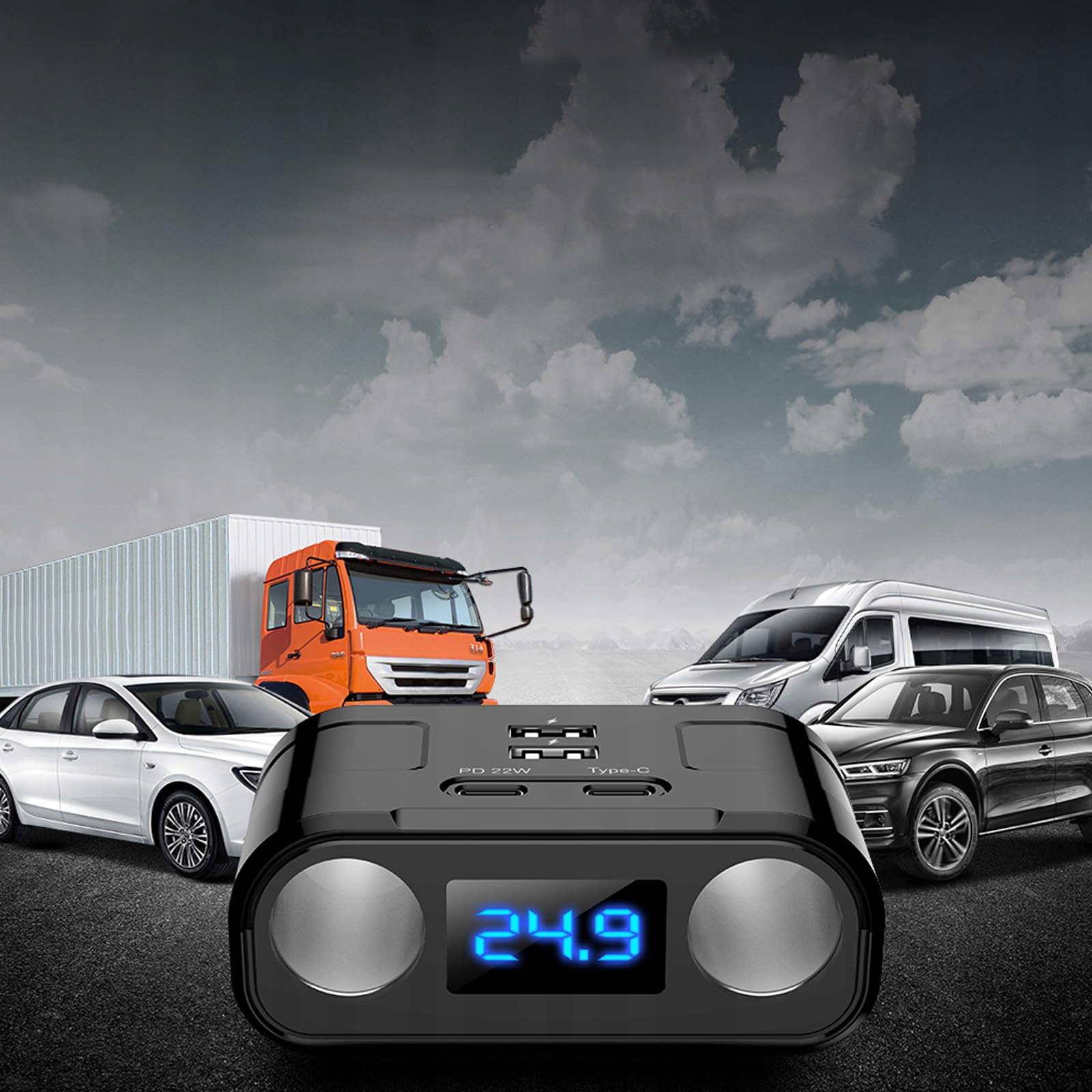 12 В/24 В автомобільний розгалужувач прикурювача для легкових і вантажних автомобілів, зарядний пристрій із 2 портами USB і 2 портами USB-C PD