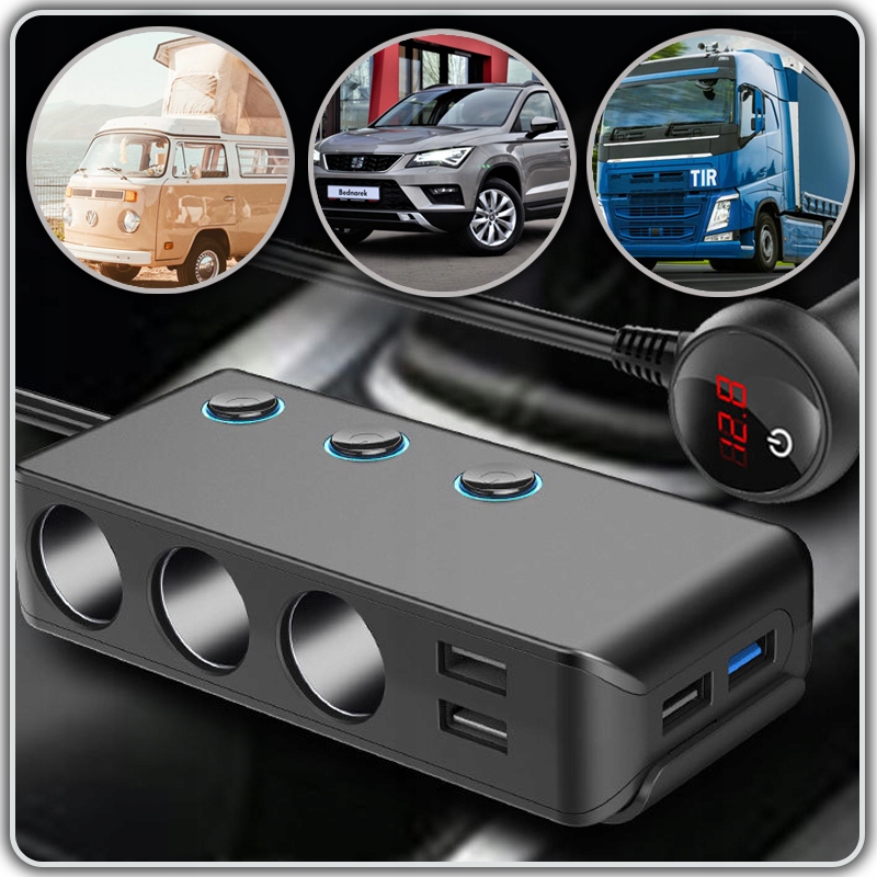 РОЗДІЛЮВАЧ РОЗЕТКИ ПРИКУРУВАЛЬНИКА 12-24 В 3 РОЗЕТКИ + 4 USB QC3.0