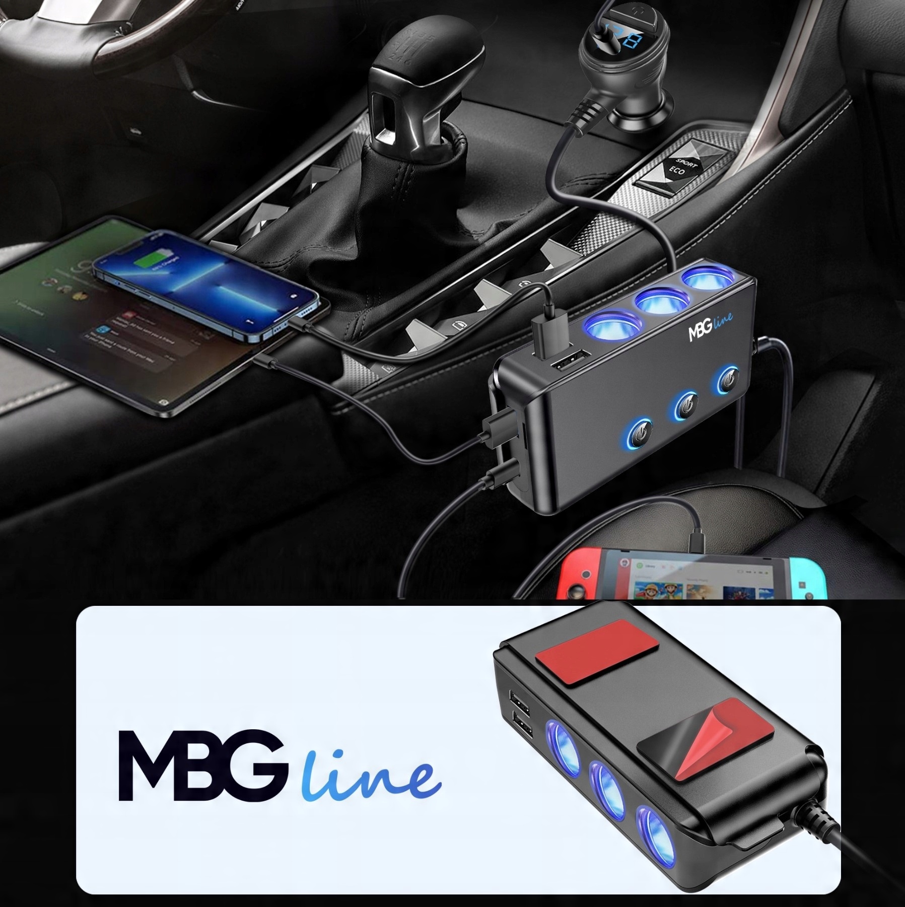 - Високоякісний багатопортовий зарядний пристрій USB + розгалужувач прикурювача