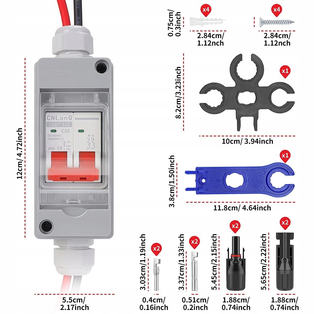 - Автоматичний вимикач постійного струму оснащений двома роз’ємами MC-4 «папа» та «мама» для швидшого та безпечнішого встановлення та економії часу.