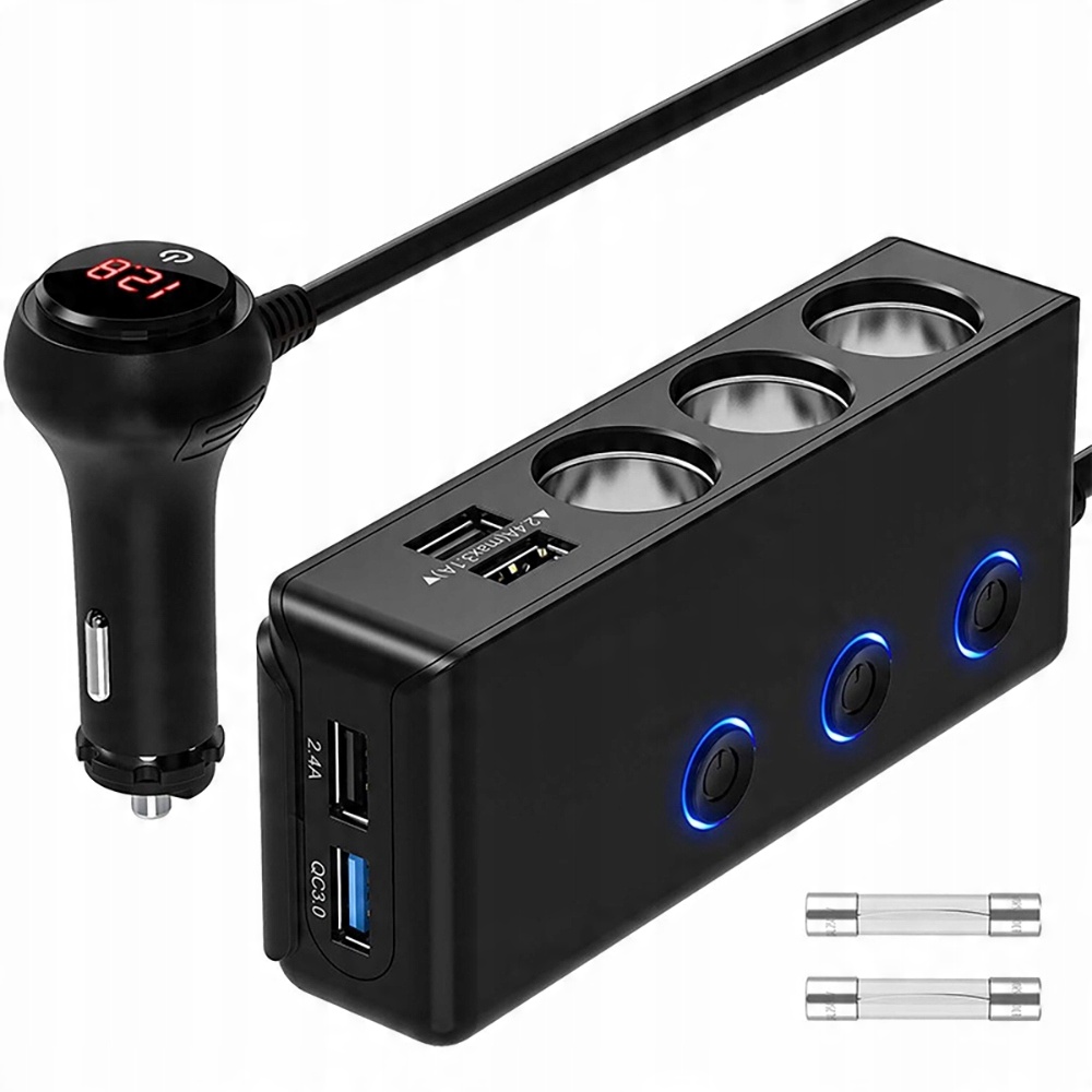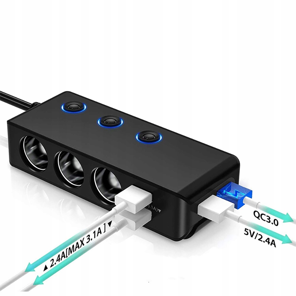 ➡ Це потужний розподільник автомобільної розетки з головним вимикачем і 3 незалежними вимикачами