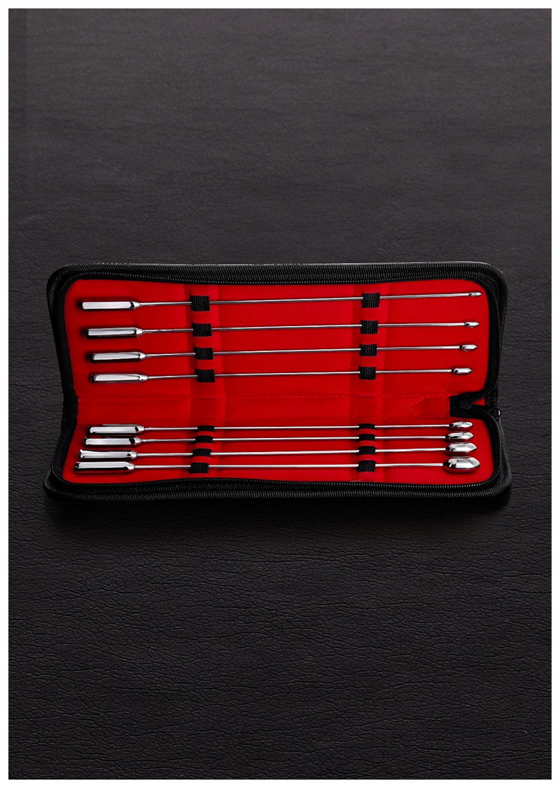 Завдяки своїй унікальній формі кінчики викликають дуже чутливе відчуття, коли вони ковзають і виходять, що призводить до перевантаження задоволення. У набір входить вісім різних звуків довжиною 30 см (приблизно 12 дюймів). Тонкі сталеві стрижні потім увінчані наконечником у формі бутону троянди або кулі, які бувають різних розмірів від 0,4 до 1,2 см завширшки. і звуки довжиною 1-2,5 см поставляються в практичному шкіряному футлярі з оксамитовою підкладкою.