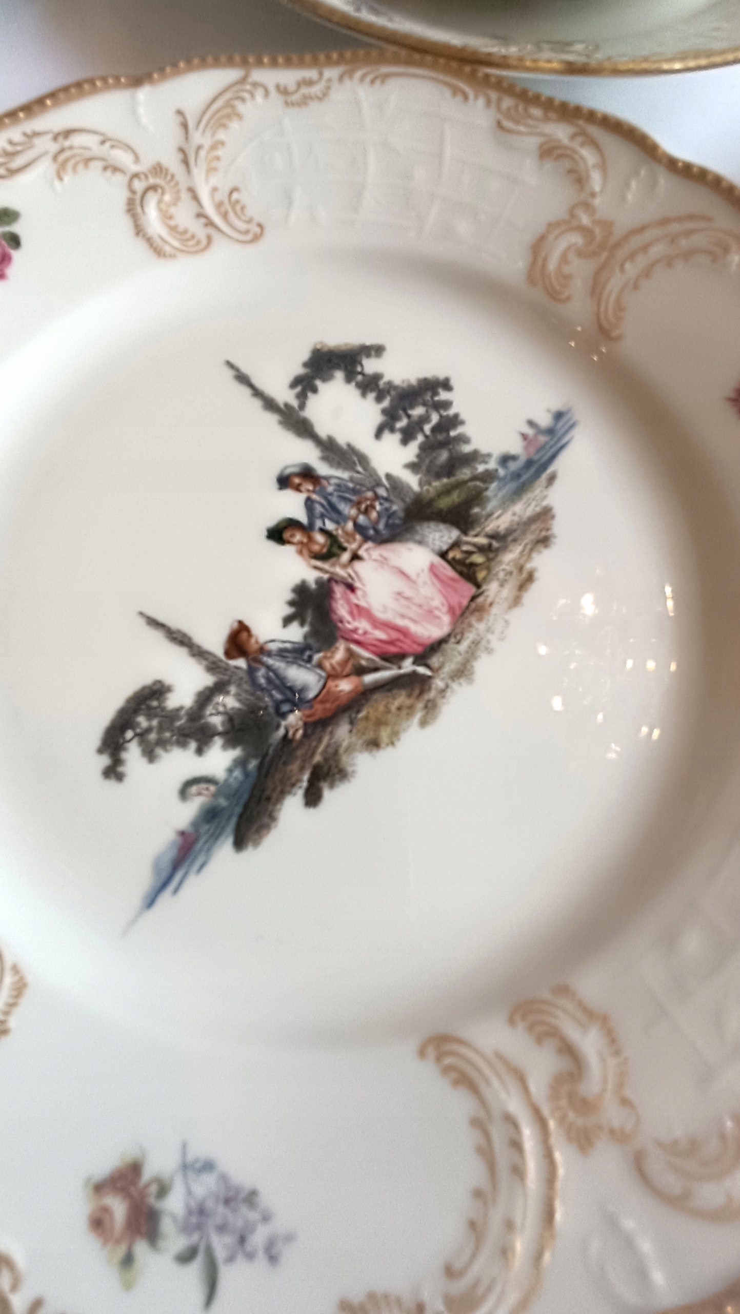 Служба була зроблена з найвищої якості порцеляни в слонової кістки. Цей посуд, розроблений у стилі рококо, забезпечує історичні мотиви добре відомого фарфорового художника Йоганна Грегора Хорольдта в класичній формі порцеляни Sanssouci. Скромально виготовлена ліпнина стеля у великому залі палацу Сансусі в Потсдамі, який має цю схему, натхненну Карлом Байреутером для розробки серії однойменних порцеляни.