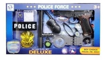іграшка зі звуками поліцейської сирени, стрілянини, перезавантаження зброї та командування поліції в мові працює на батареї AG10. Акумулятори в іграшці.
