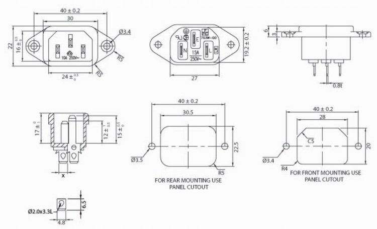 розетка AC IEC - Чоловіки - трапецієподібні - закріплені до корпусу
