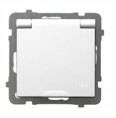 Розетка AS із заземленням IP-44, біла, з кришкою в колір виробу