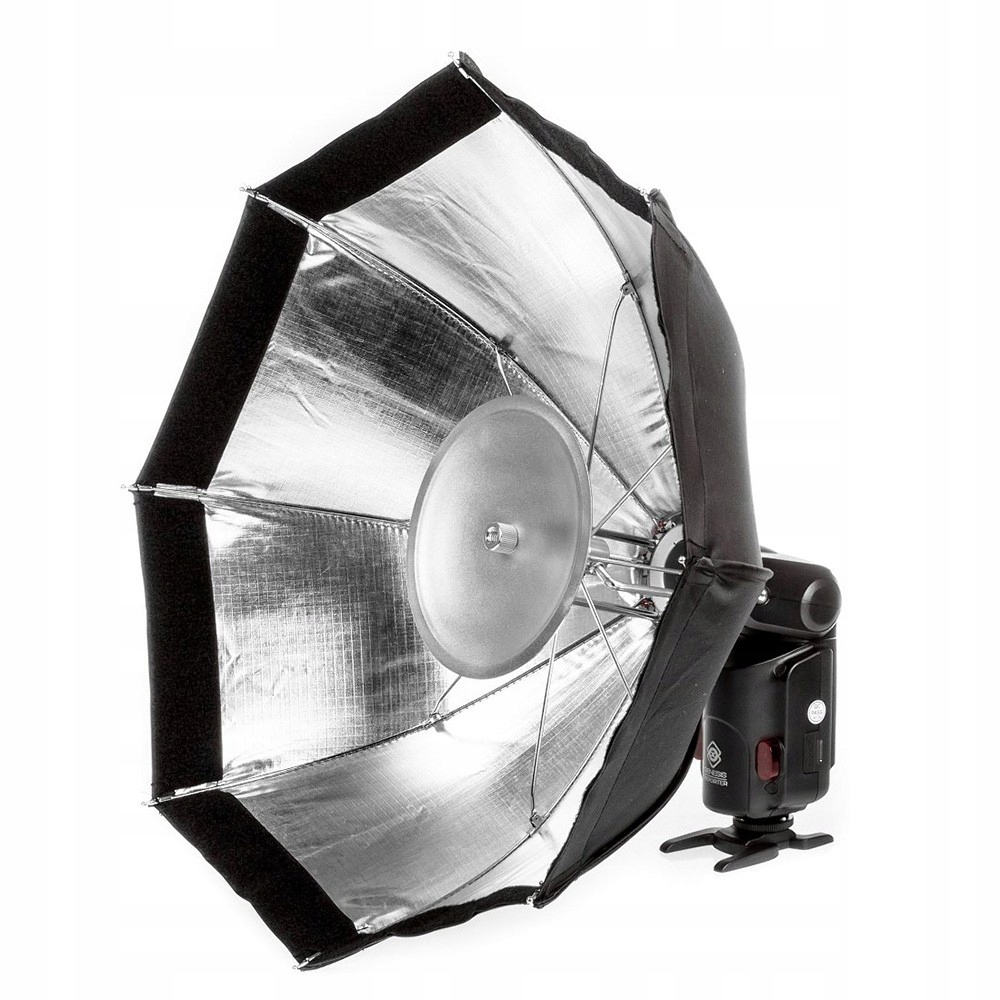Навіс для софтбоксу може виступати як традиційна срібна світловідбиваюча парасолька. Дозволяє висвітлити широкий знімальний майданчик. Однак просто прикріпіть до нього відбивач, щоб перетворити його на невелику косметичну тарілку, ідеальну для товарної та портретної зйомки. Потім створює характерні світлові відблиски. Однак встановлення дифузора з білої натуральної тканини дає нам восьмигранний софтбокс. Можна використовувати з текстильною сотою, яка звужує та спрямовує світловий промінь.