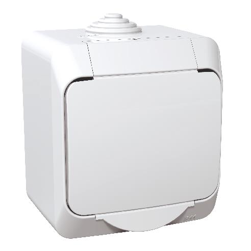Schneider Electric Cedar Plus, одинарна розетка 2P+PE з білою кришкою, IP44, білий, WDE000540
