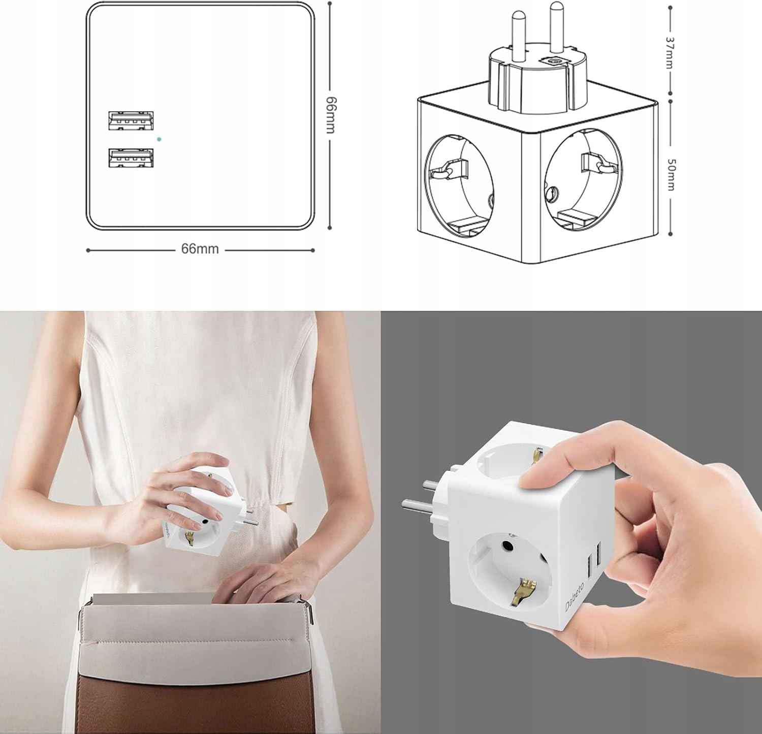 USB-роз’єм Dabeto, 5 в 1, 3 роз’єми, 2 USB-роз’єми, USB-зарядний куб, вогнетривкий матеріал, без кабелю, легко носити (білий)