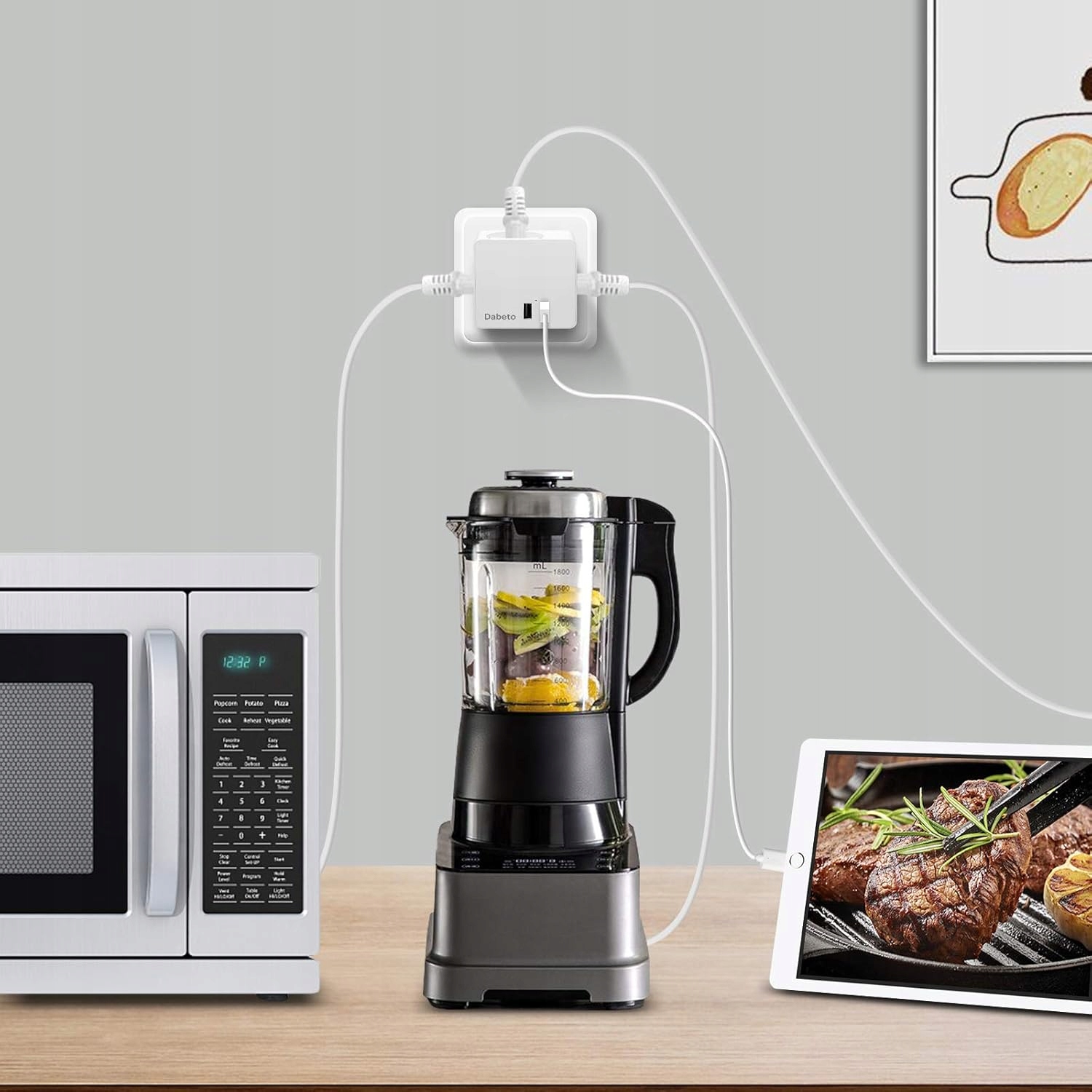 - ✔ Багатофункціональна розетка 5 в 1: 3 адаптери розеток, 250 В, 16 А, макс. 3680 Вт, 2 зарядні пристрої USB -5 В 2,4 А, лише вбудована мікросхема, швидка зарядка для різних пристроїв