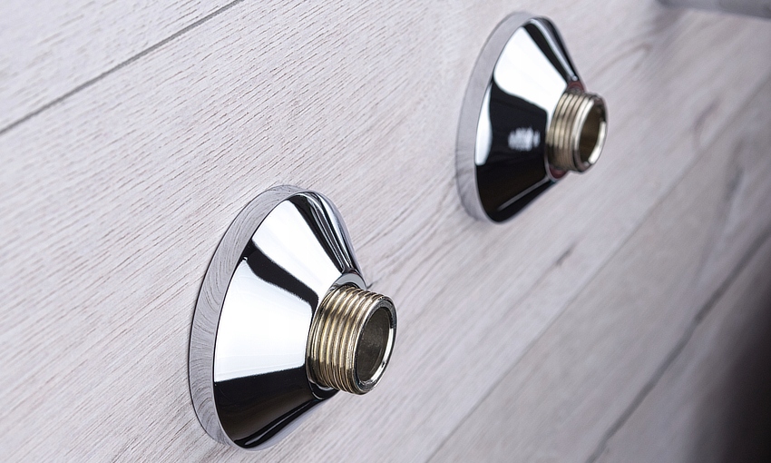 Крім того, розетка виконує важливу функцію приховування місця встановлення настінного змішувача. Він міцний і стійкий до вологи та перепадів температури, що гарантує довготривалу естетичність.