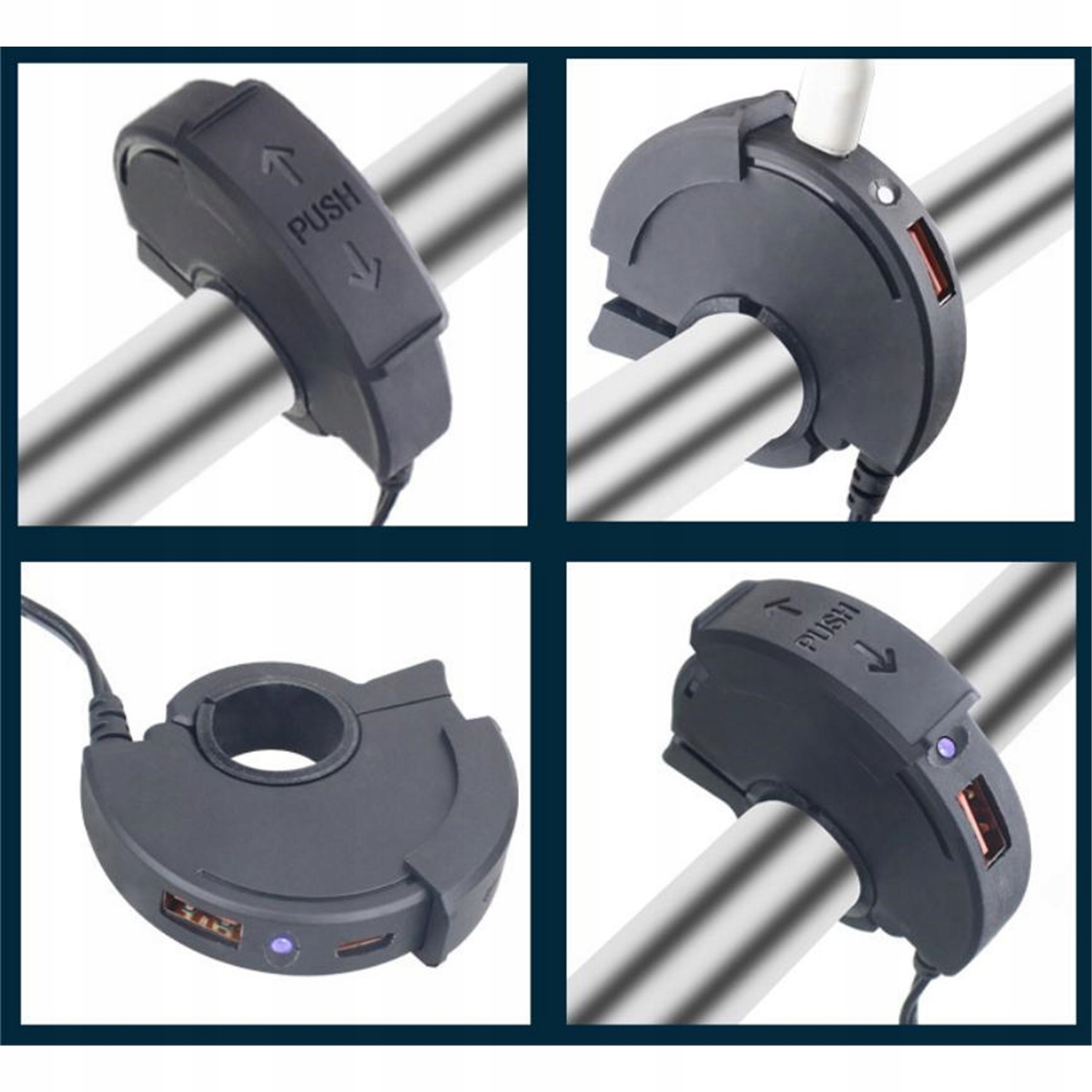 Розетка для зарядки USB-C QC3.0 для мотоцикла з вольтметром - швидка, чорна