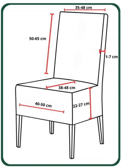 На малюнку нижче показано розміри стільців, до яких підходить наш чохол. Якщо ваше крісло на +- 2 см більше/менше - наш чохол все одно підійде!