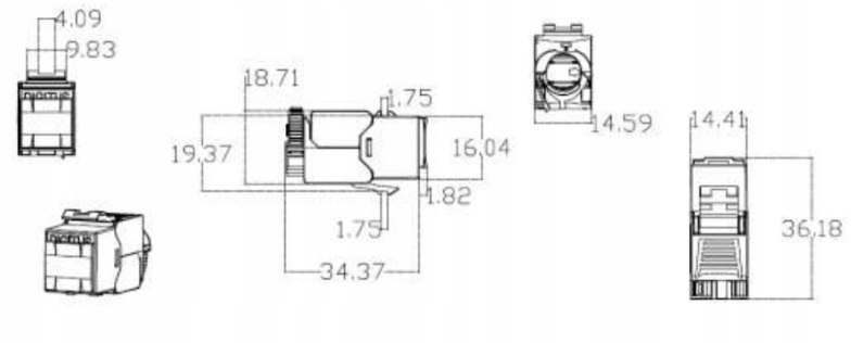 Стандартний розмір отвору модуля відповідає стандарту Keystone і становить 19,35 мм x 14,8 мм.